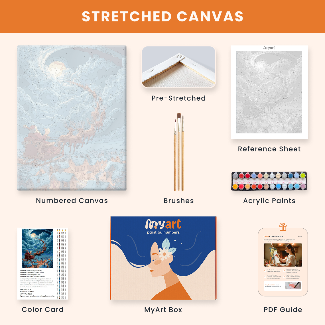 The canvas is pre-stretched on a wooden frame — ready to hang when finished.