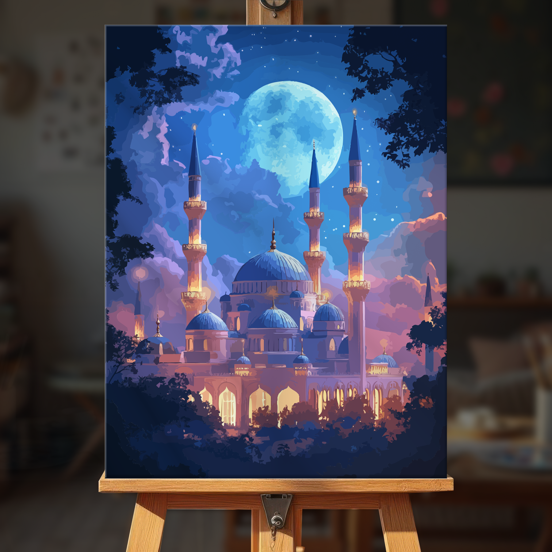 The canvas is pre-stretched on a wooden frame — ready to hang when finished.