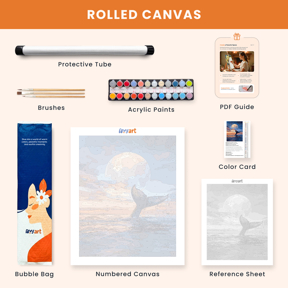 - Premium acrylic paint set (pre-mixed and numbered)