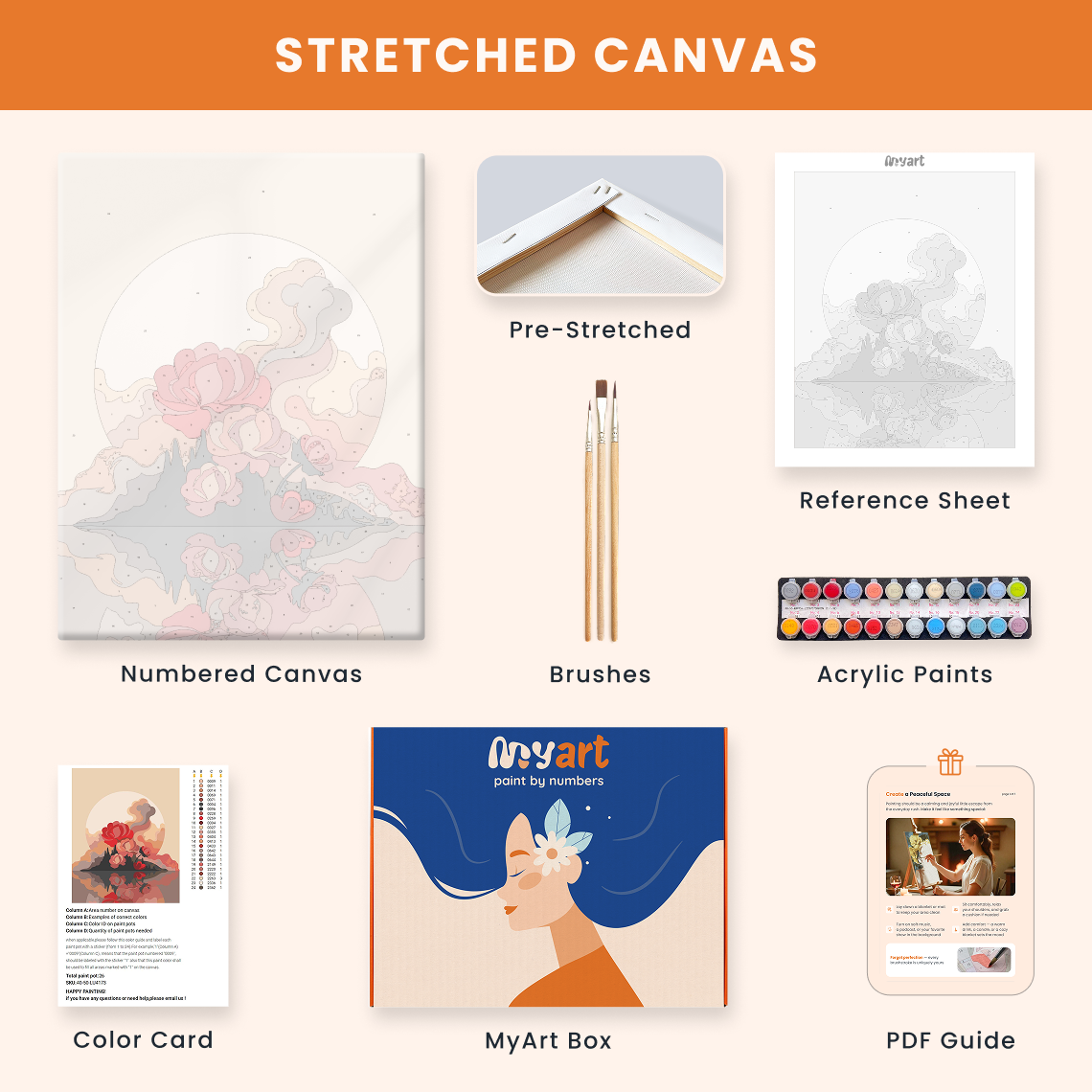 - Premium acrylic paint set (pre-mixed and numbered)