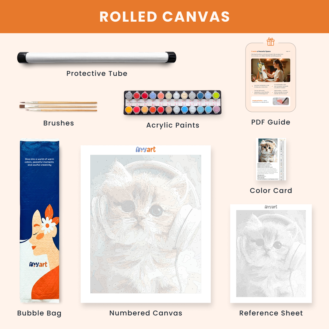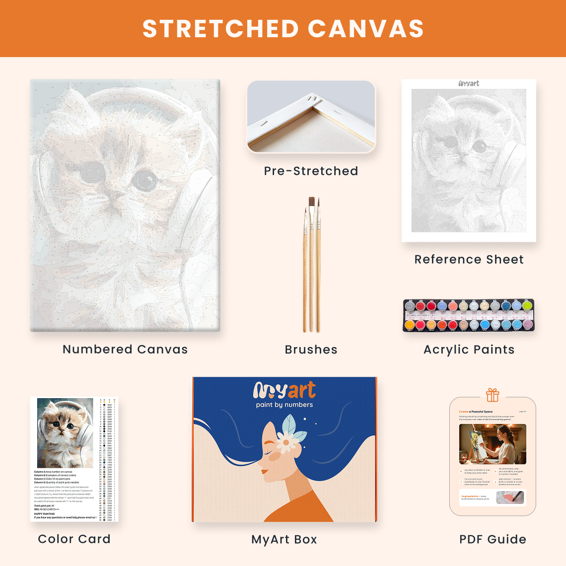 - Premium acrylic paint set (pre-mixed and numbered)