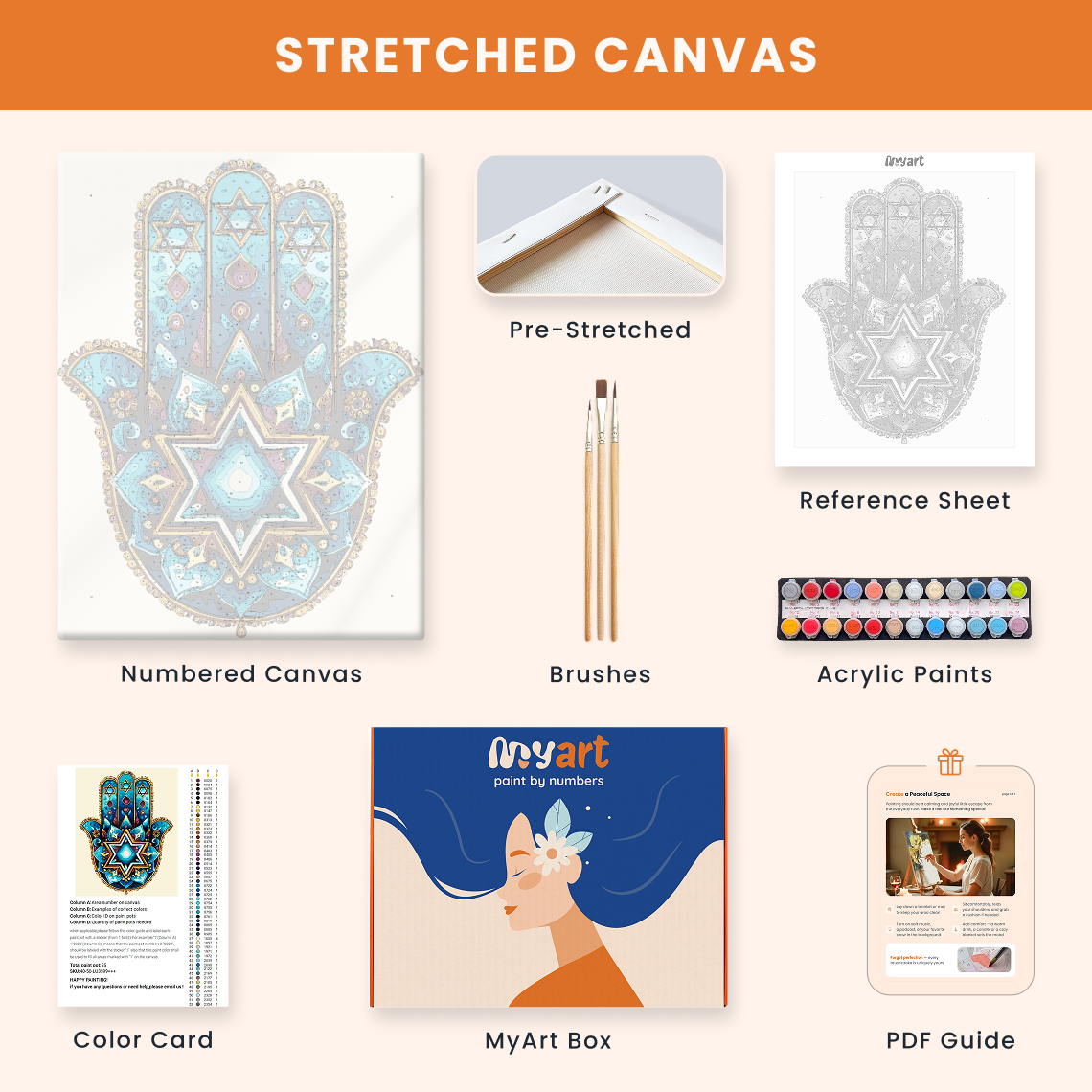 The canvas is pre-stretched on a wooden frame — ready to hang when finished.