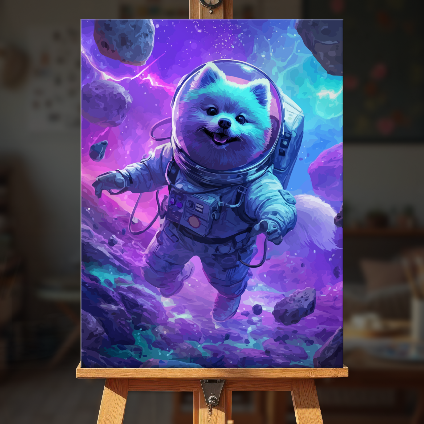 The canvas is pre-stretched on a wooden frame — ready to hang when finished.