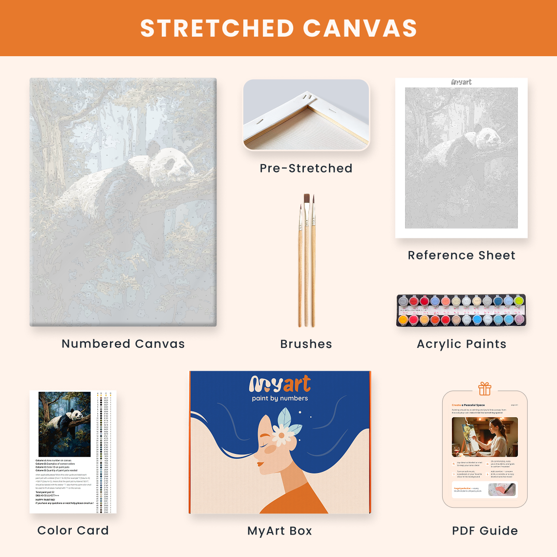 - Premium acrylic paint set (pre-mixed and numbered)