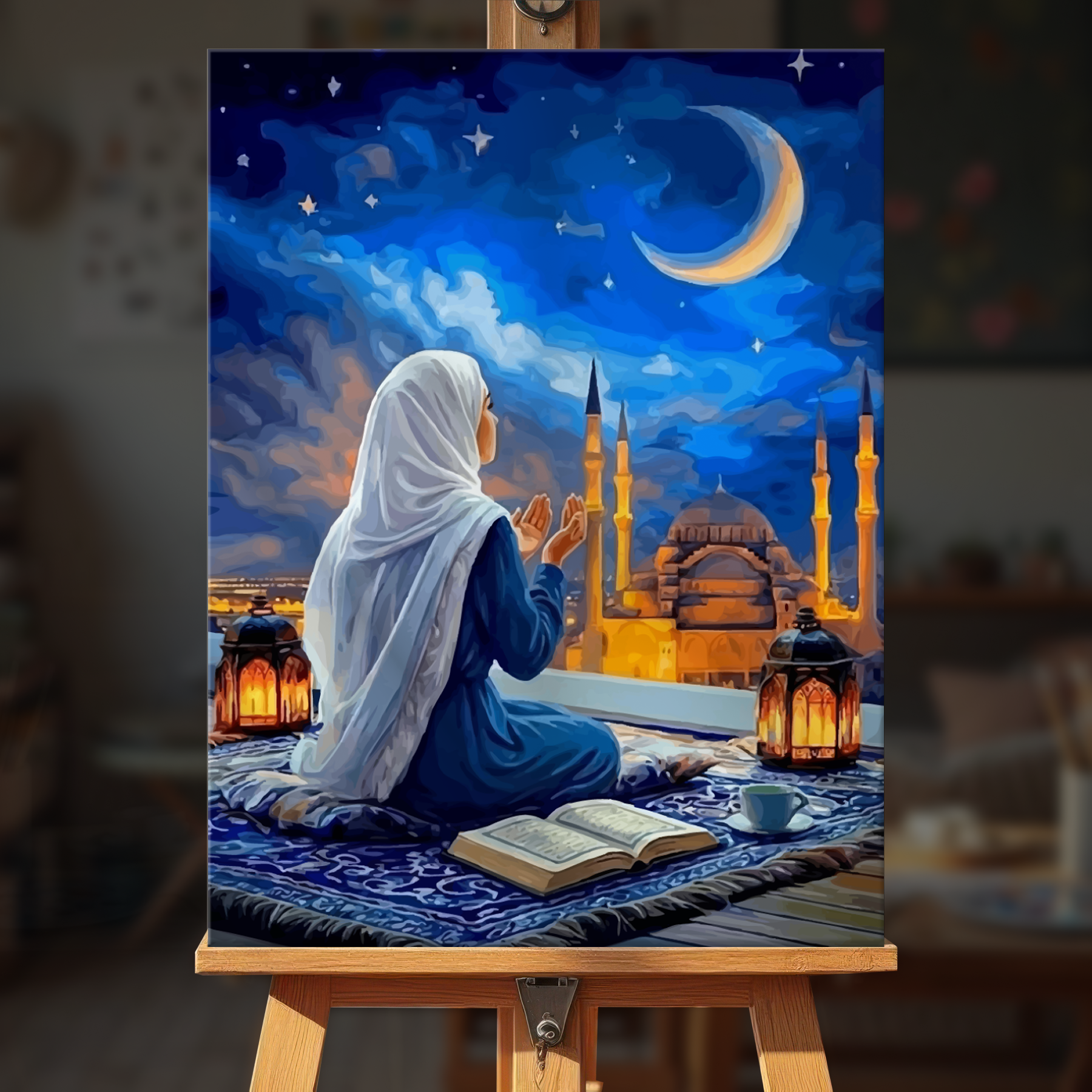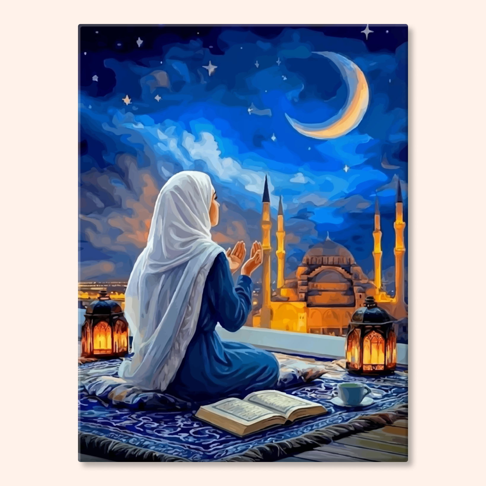 The canvas is pre-stretched on a wooden frame — ready to hang when finished.