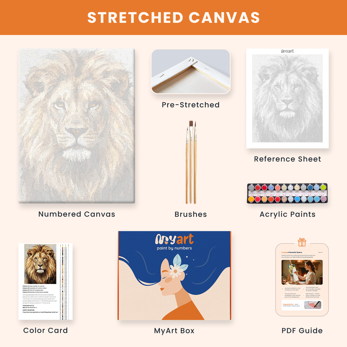 - Premium acrylic paint set (pre-mixed and numbered)