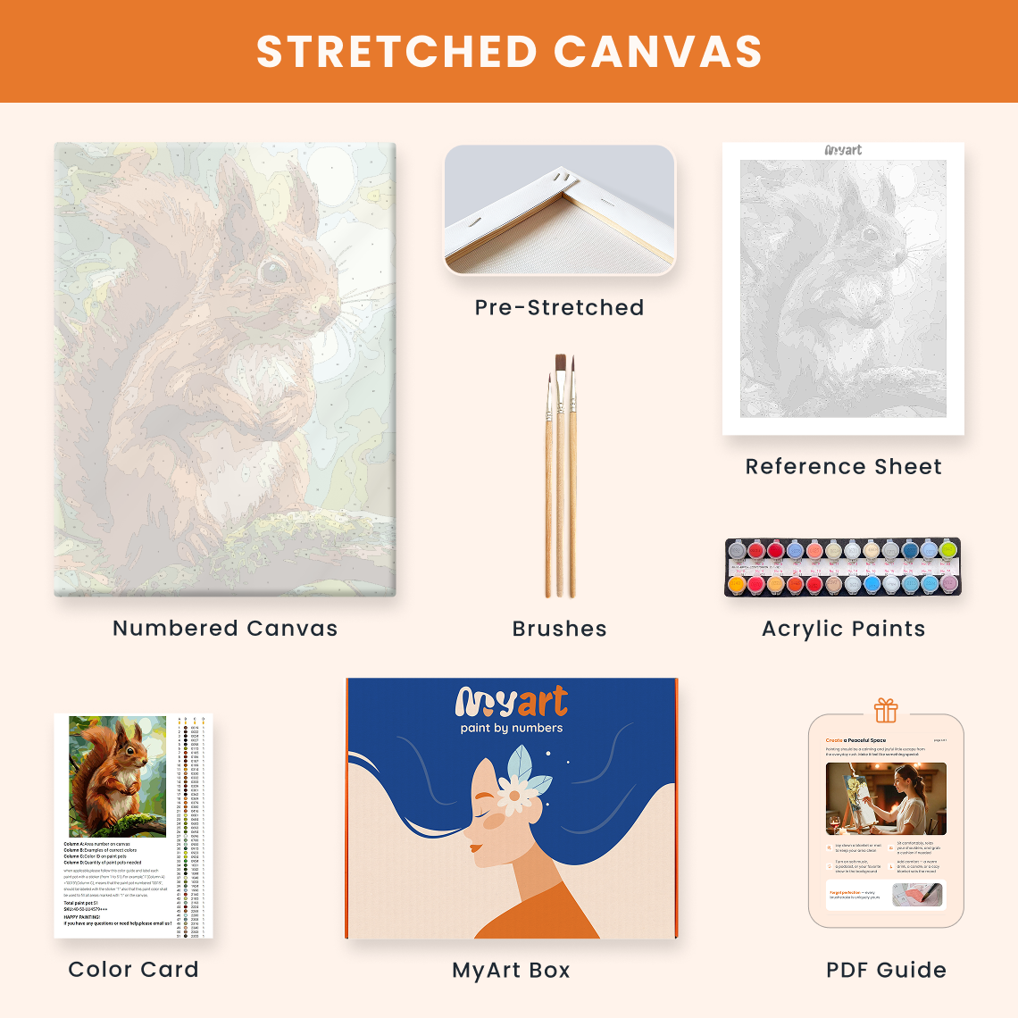 - Premium acrylic paint set (pre-mixed and numbered)