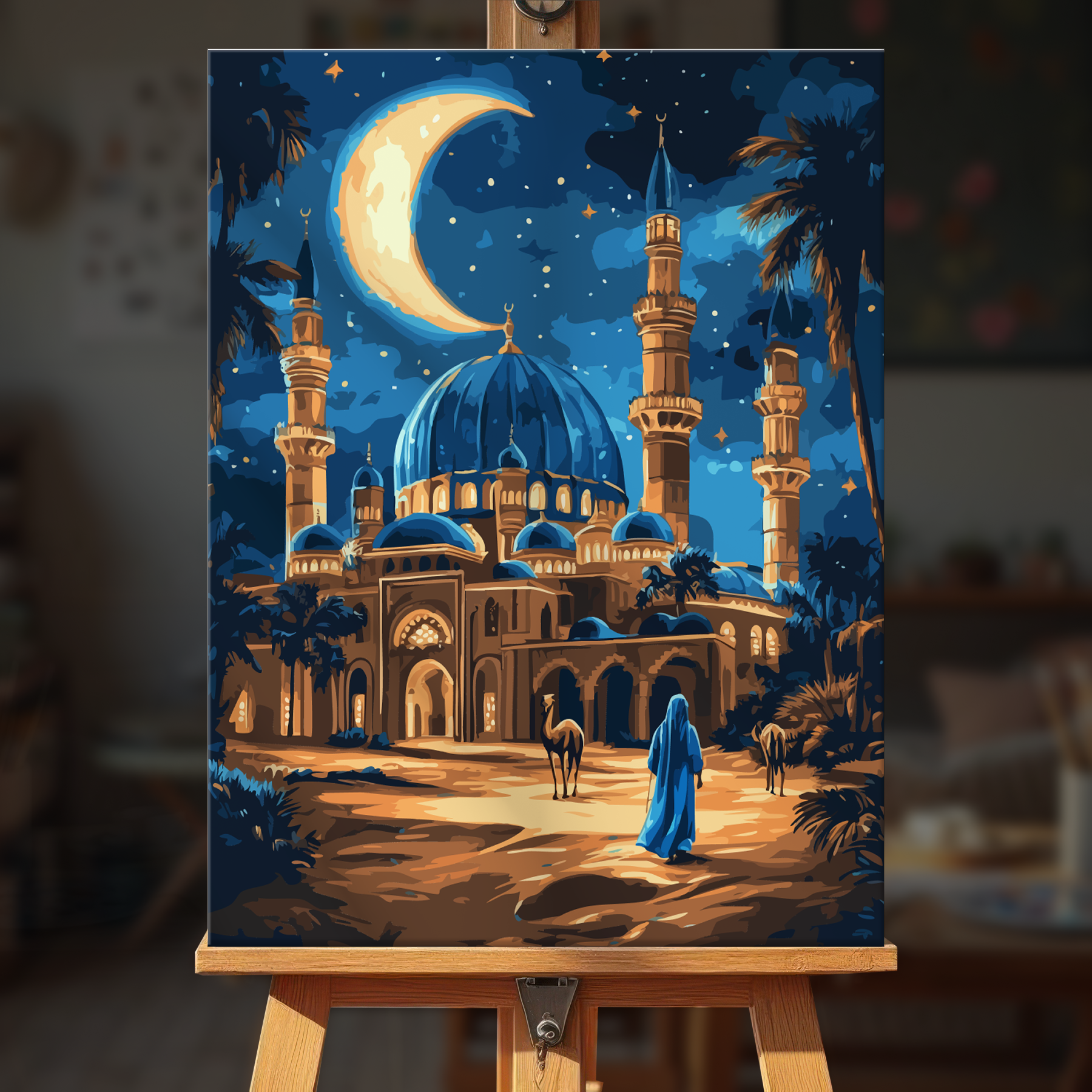 The canvas is pre-stretched on a wooden frame — ready to hang when finished.
