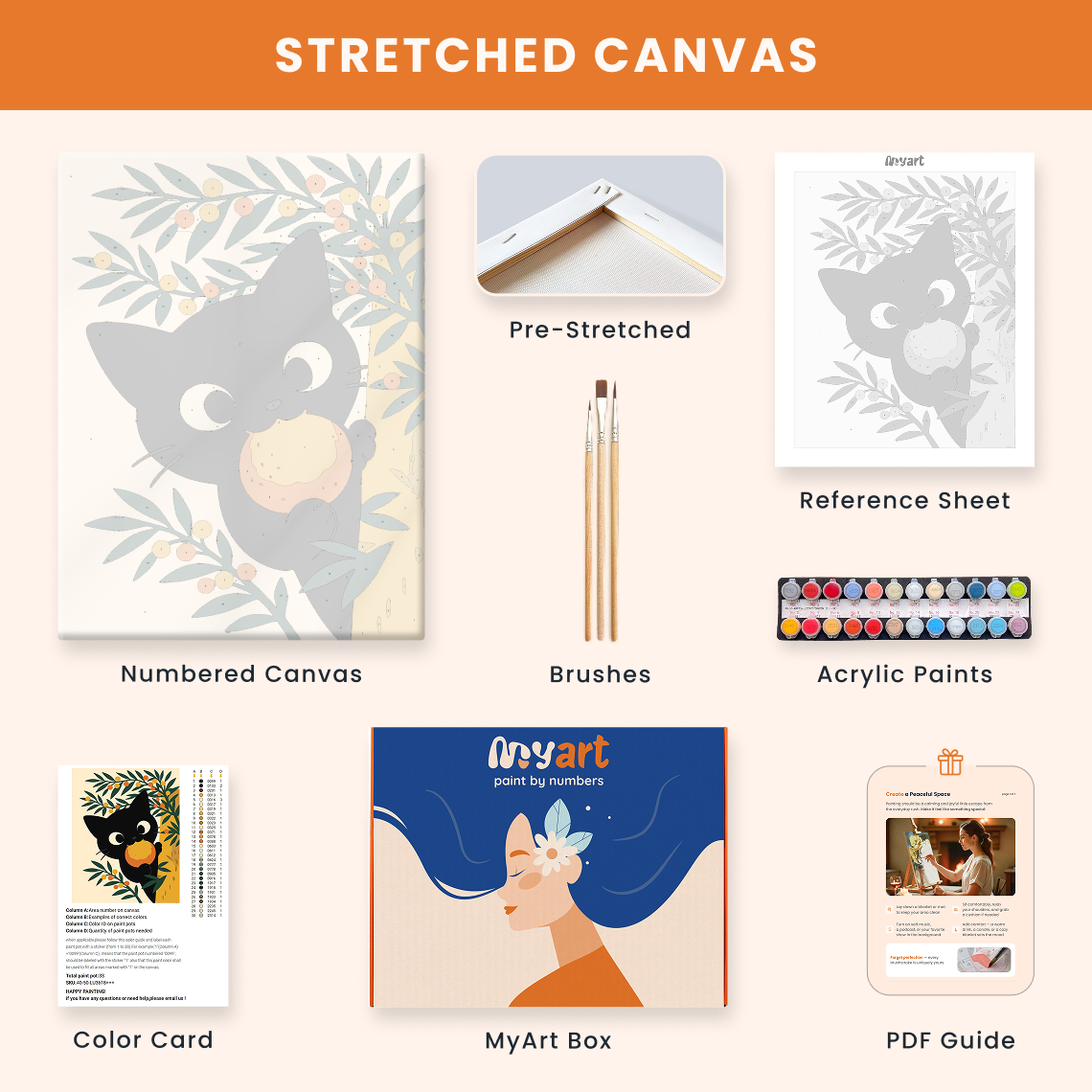 - Premium acrylic paint set (pre-mixed and numbered)