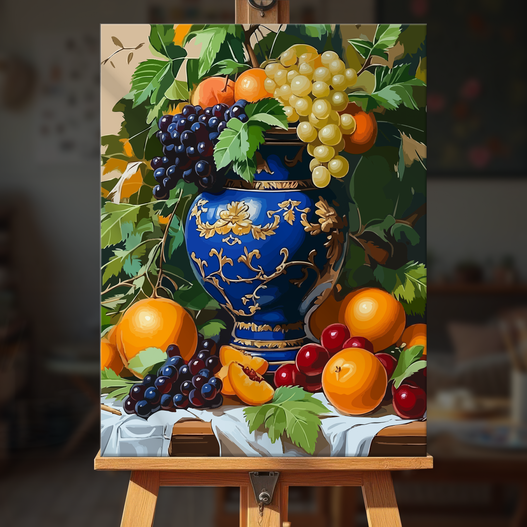 The canvas is pre-stretched on a wooden frame โ ready to hang when finished.