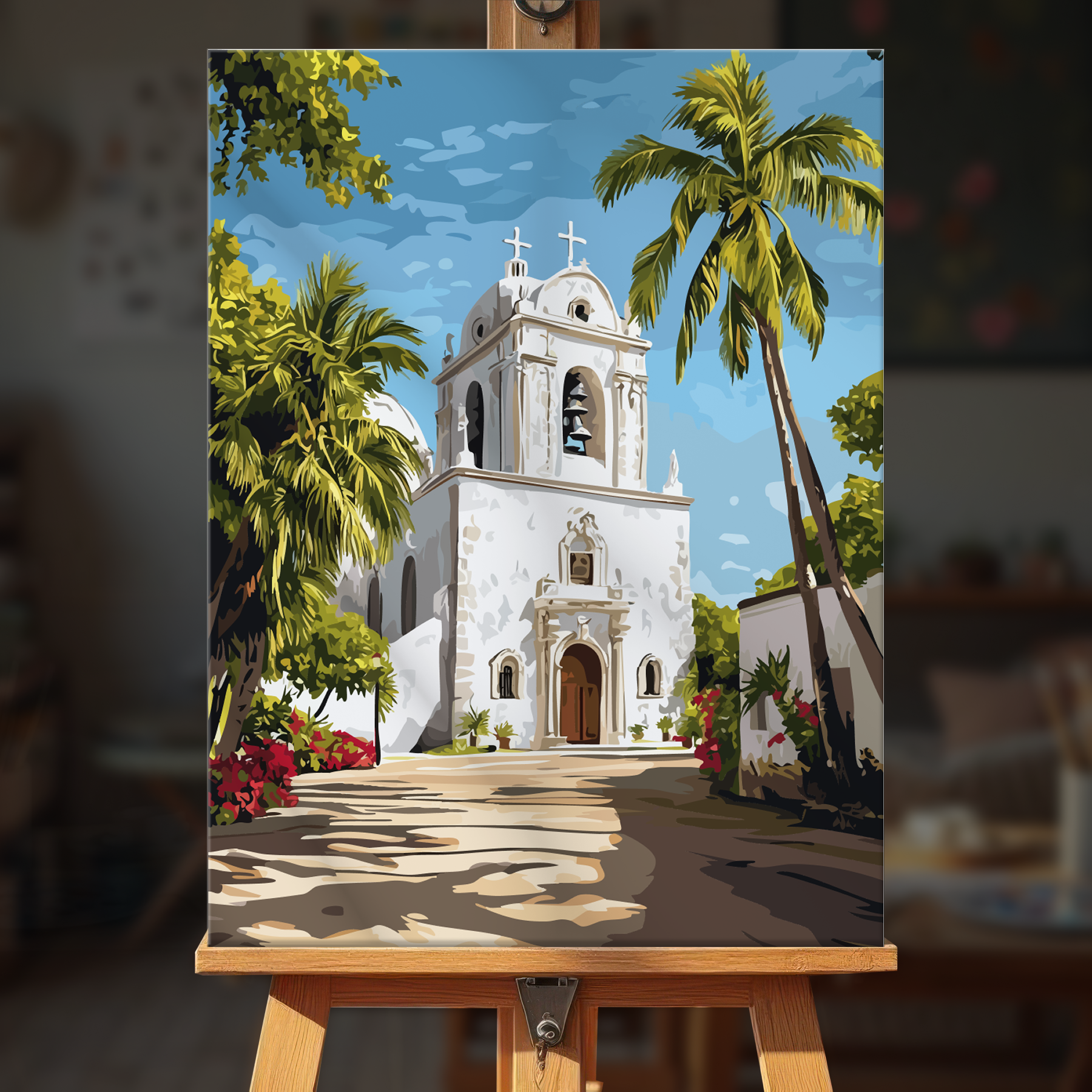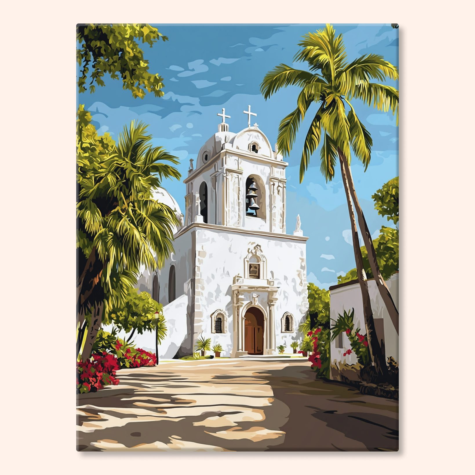 The canvas is pre-stretched on a wooden frame — ready to hang when finished.