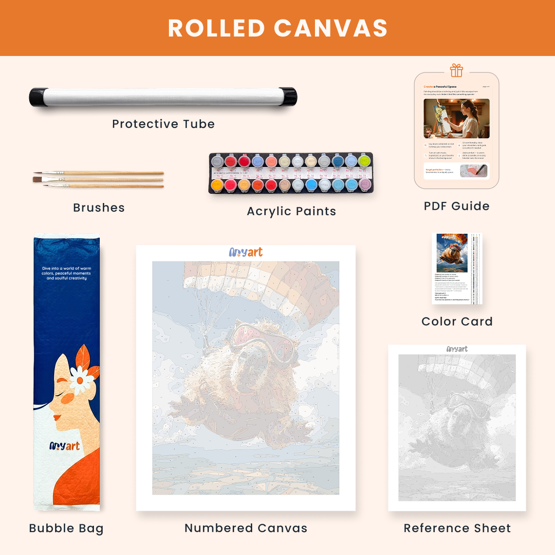 - Premium acrylic paint set (pre-mixed and numbered)
