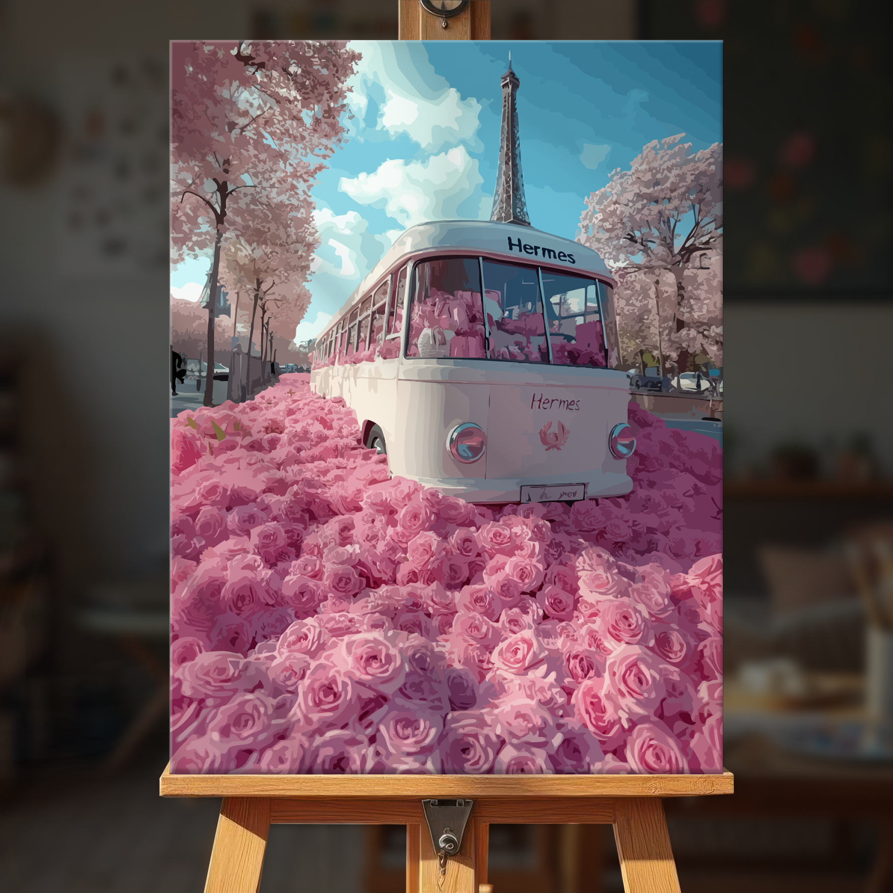 The canvas is pre-stretched on a wooden frame — ready to hang when finished.