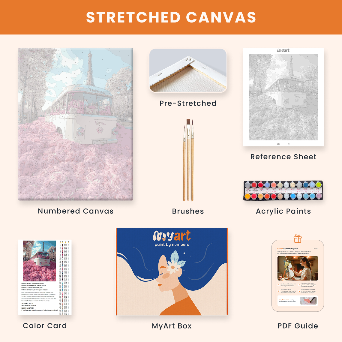 - Premium acrylic paint set (pre-mixed and numbered)