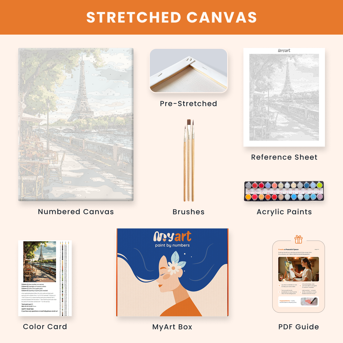 - Premium acrylic paint set (pre-mixed and numbered)
