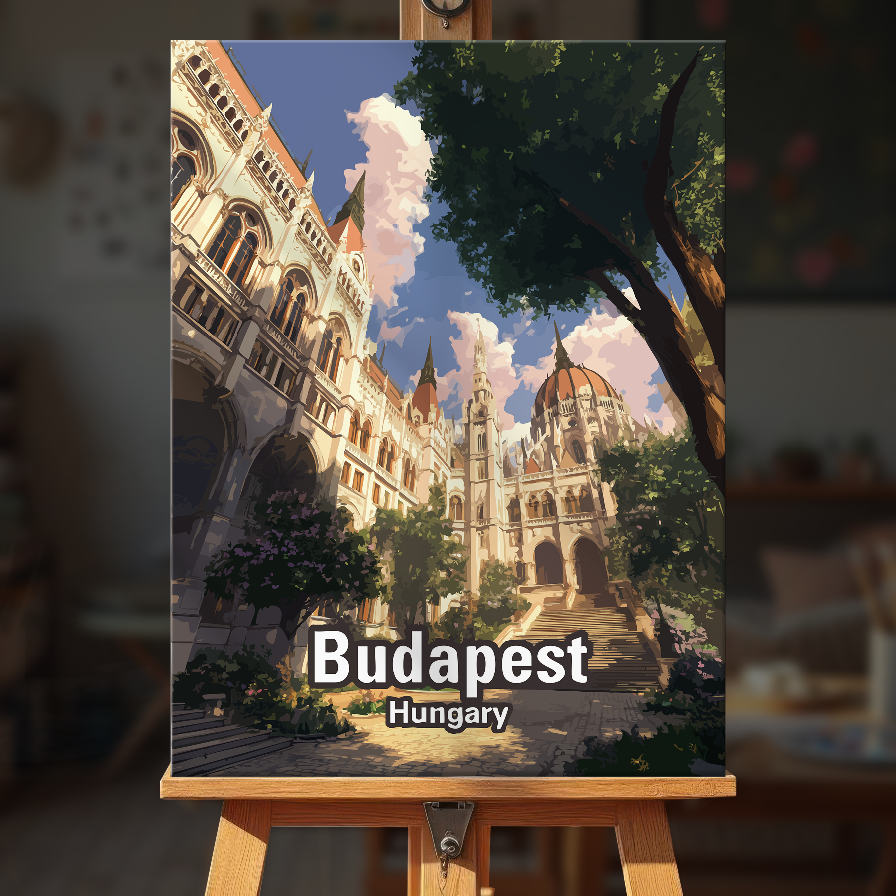 The canvas is pre-stretched on a wooden frame โ ready to hang when finished.