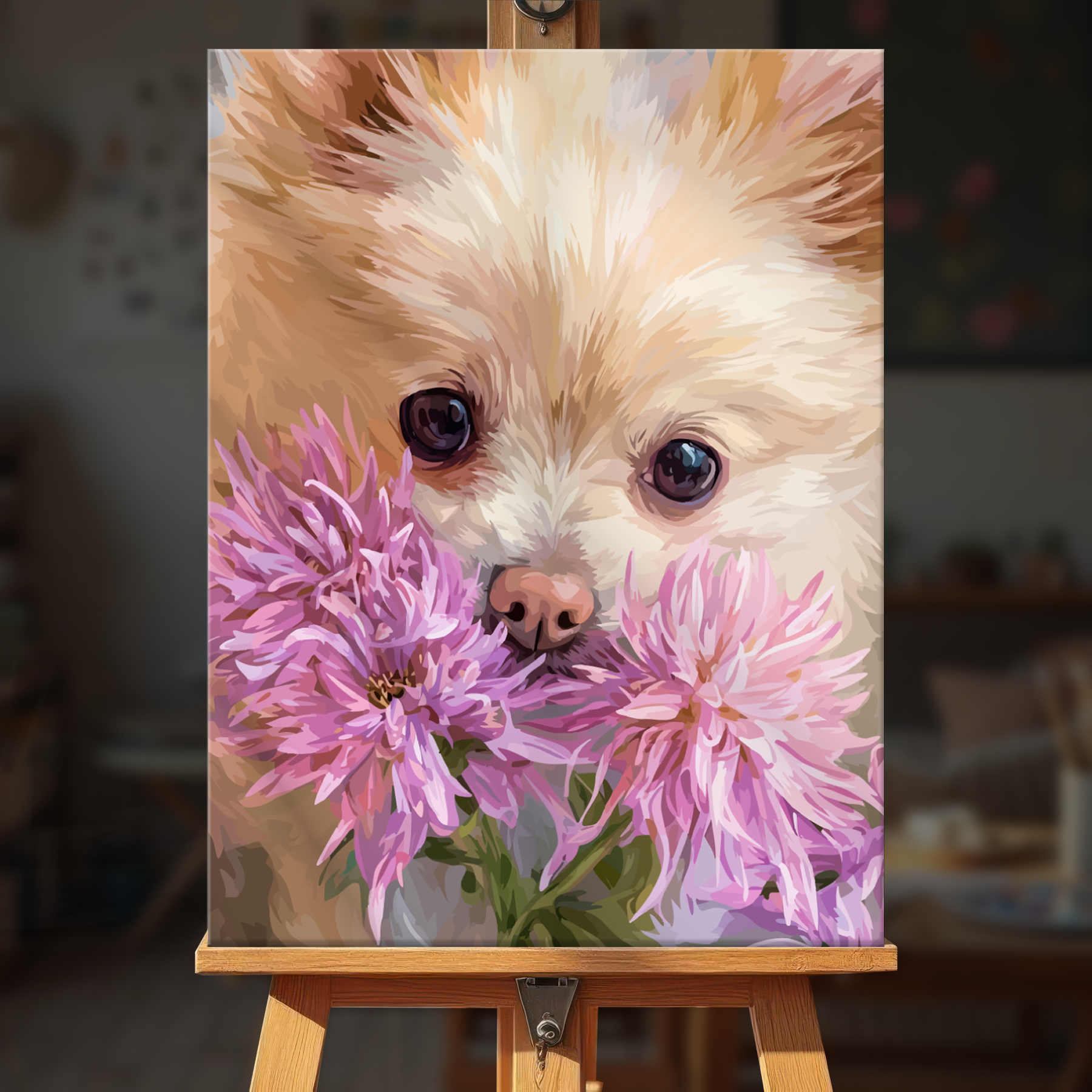 The canvas is pre-stretched on a wooden frame — ready to hang when finished.