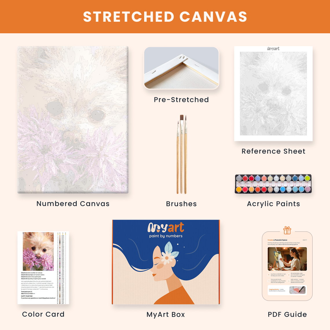 - Premium acrylic paint set (pre-mixed and numbered)
