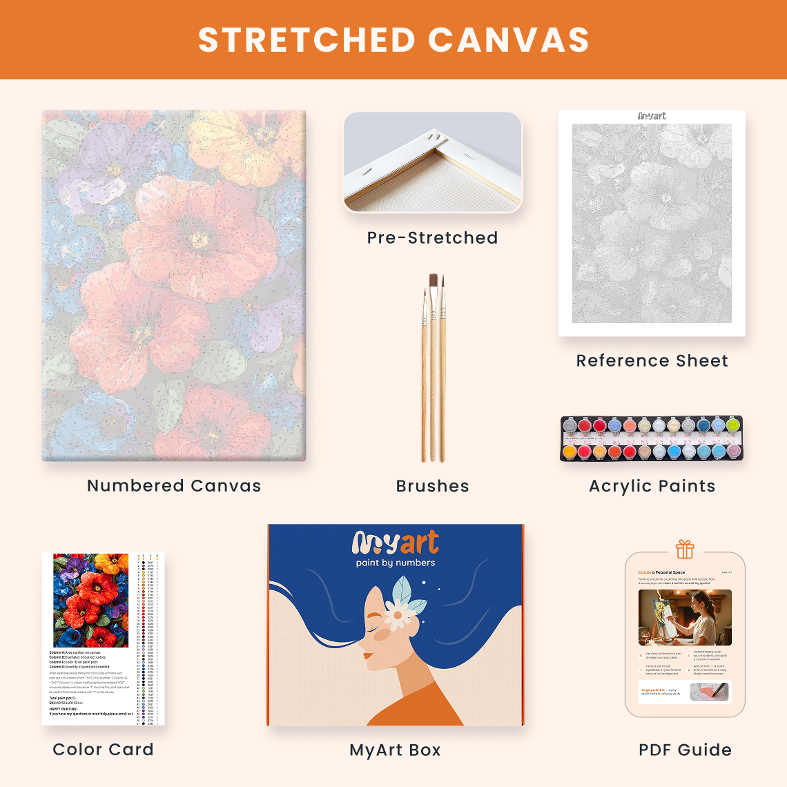 - Premium acrylic paint set (pre-mixed and numbered)