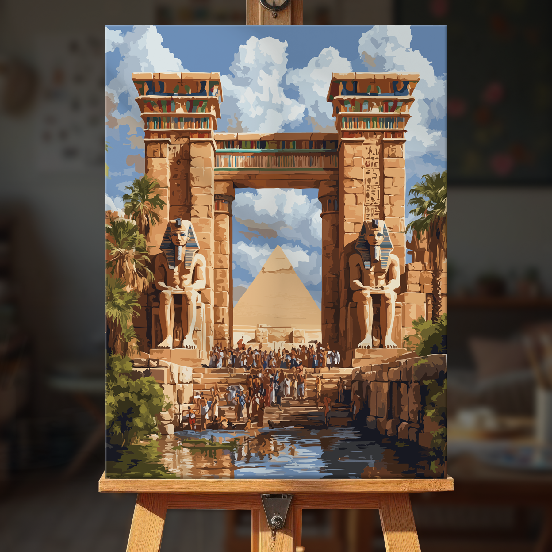 The canvas is pre-stretched on a wooden frame — ready to hang when finished.