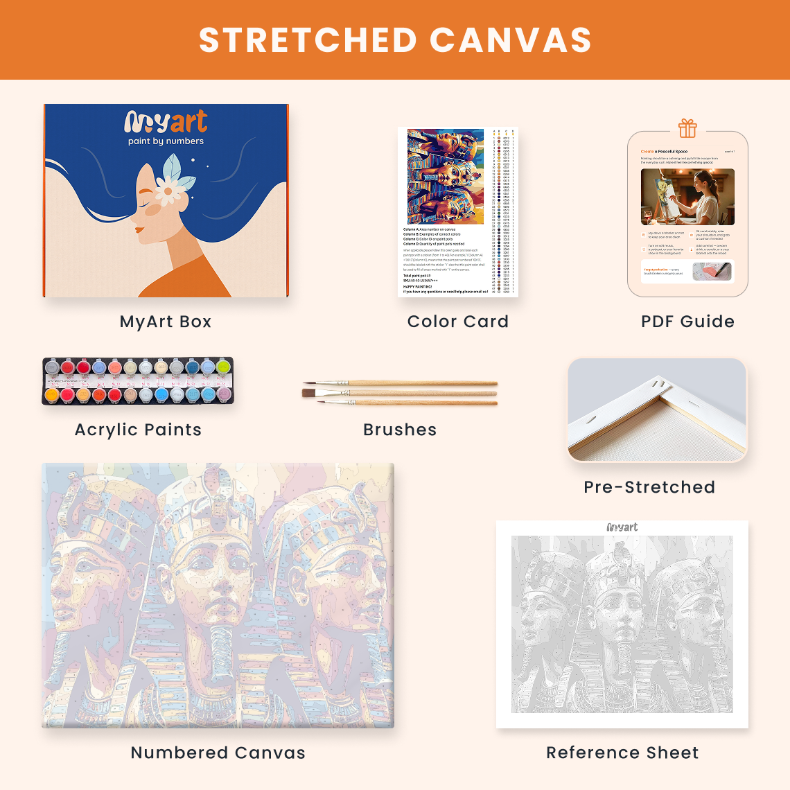 - Premium acrylic paint set (pre-mixed and numbered)