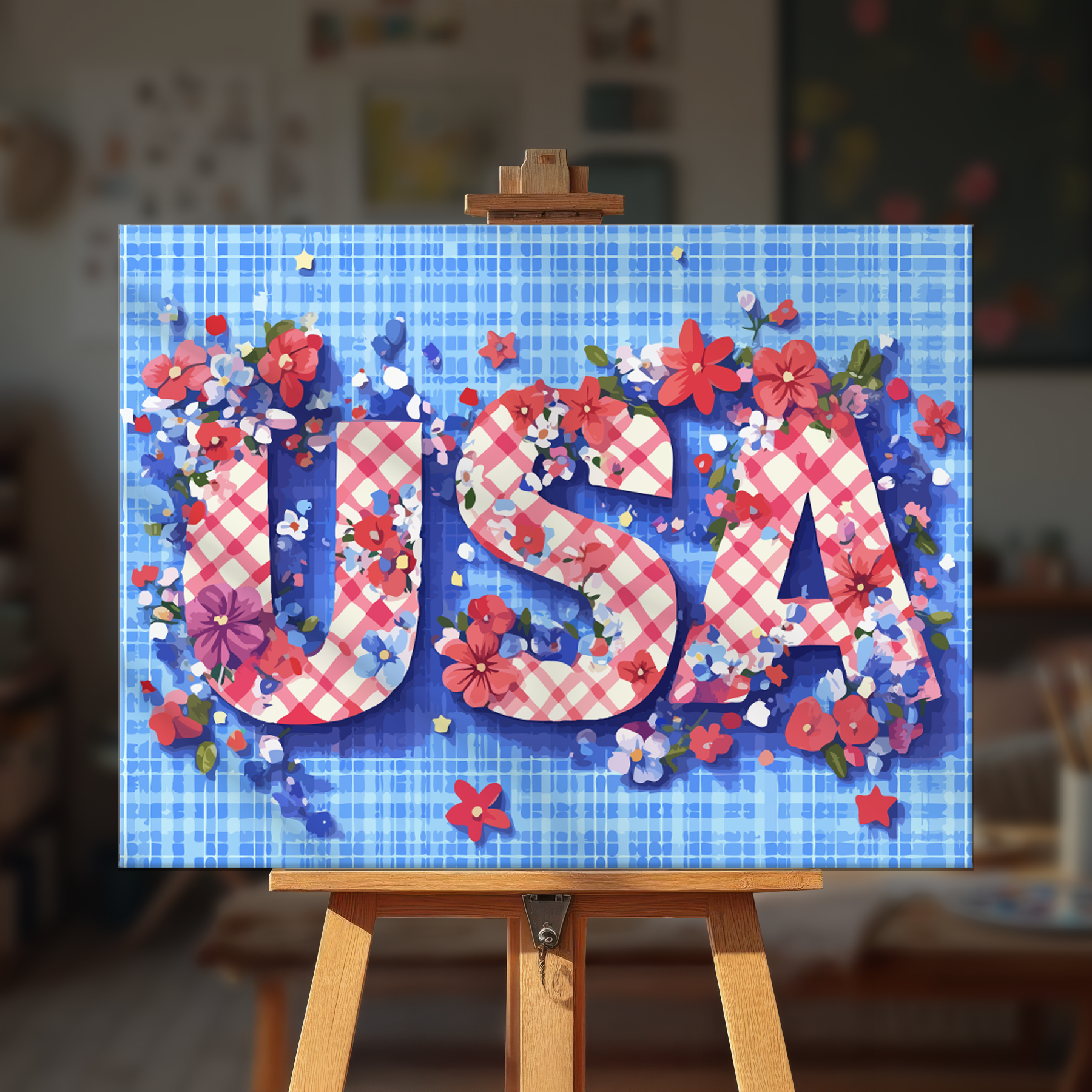 The canvas is pre-stretched on a wooden frame — ready to hang when finished.