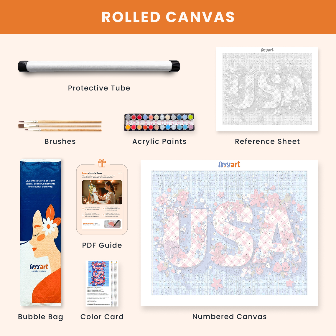 - Premium acrylic paint set (pre-mixed and numbered)