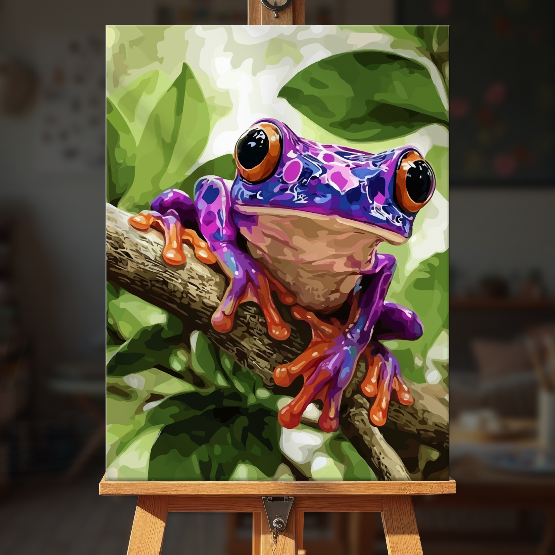 The canvas is pre-stretched on a wooden frame — ready to hang when finished.