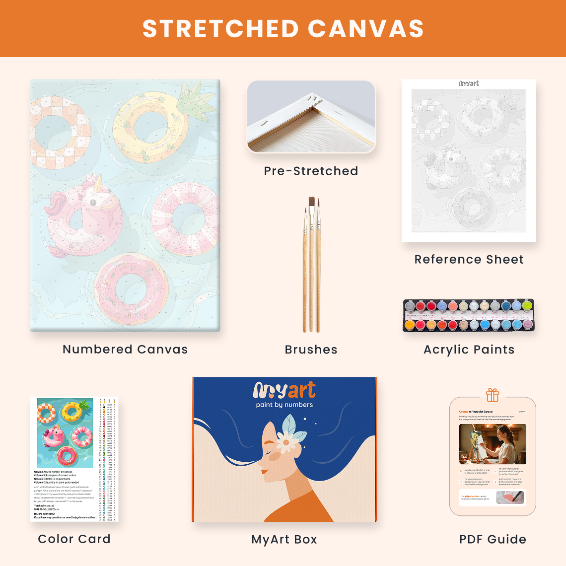 The canvas is pre-stretched on a wooden frame — ready to hang when finished.