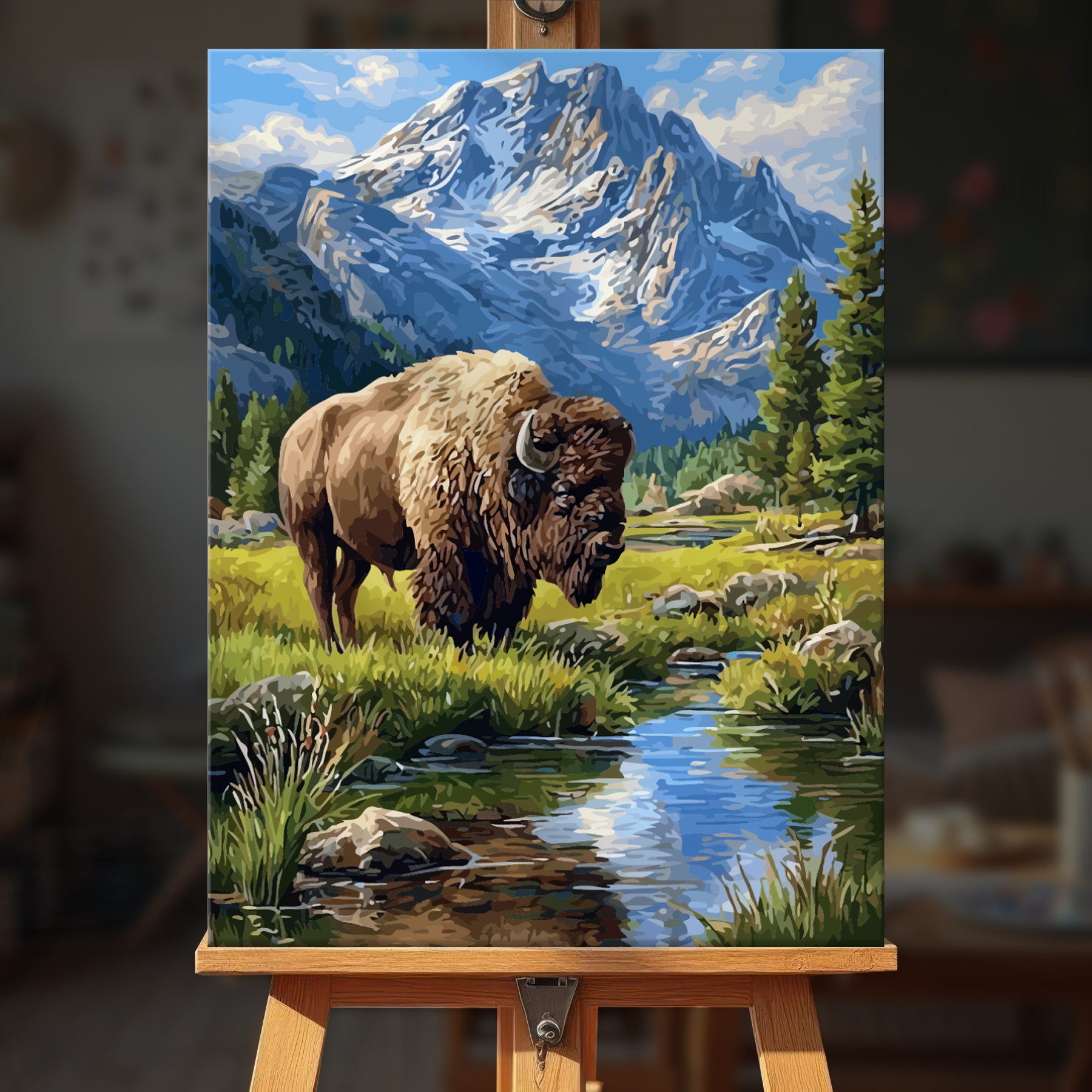 The canvas is pre-stretched on a wooden frame — ready to hang when finished.