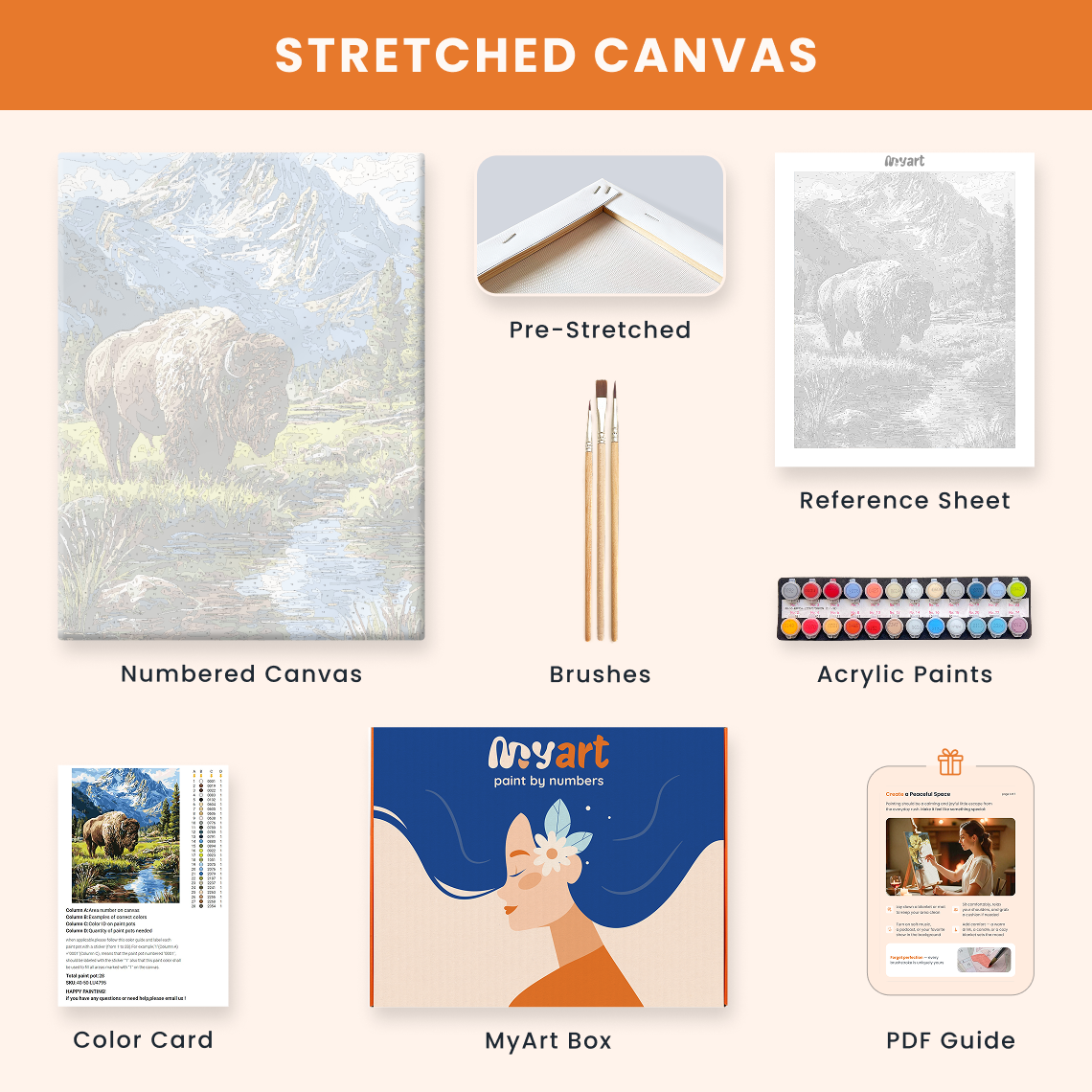 - Premium acrylic paint set (pre-mixed and numbered)