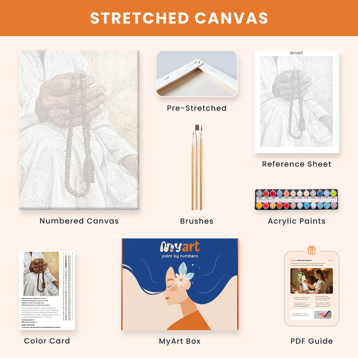 - Premium acrylic paint set (pre-mixed and numbered)