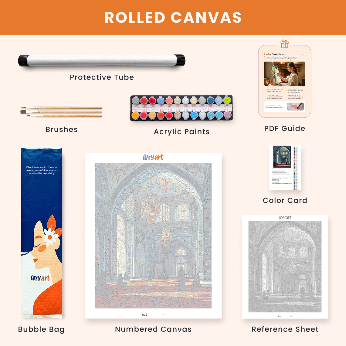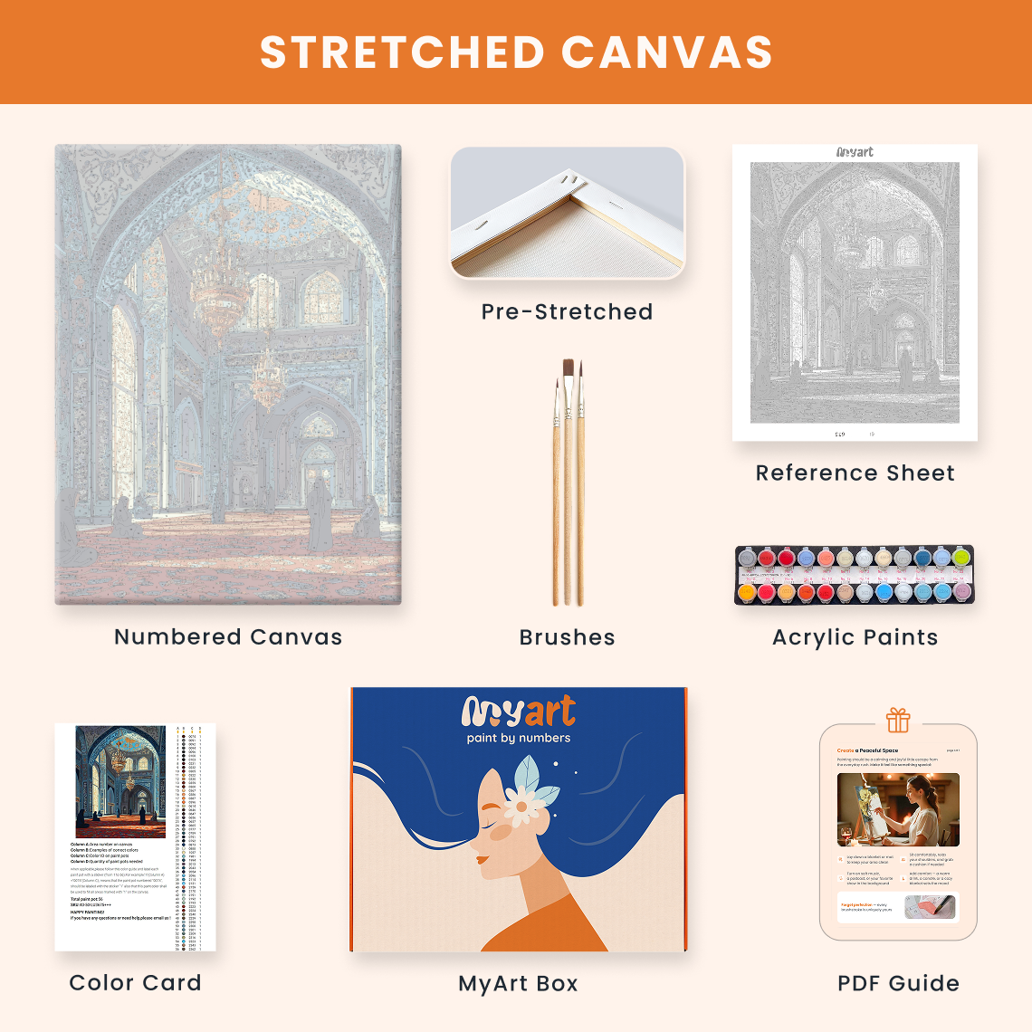 - Premium acrylic paint set (pre-mixed and numbered)