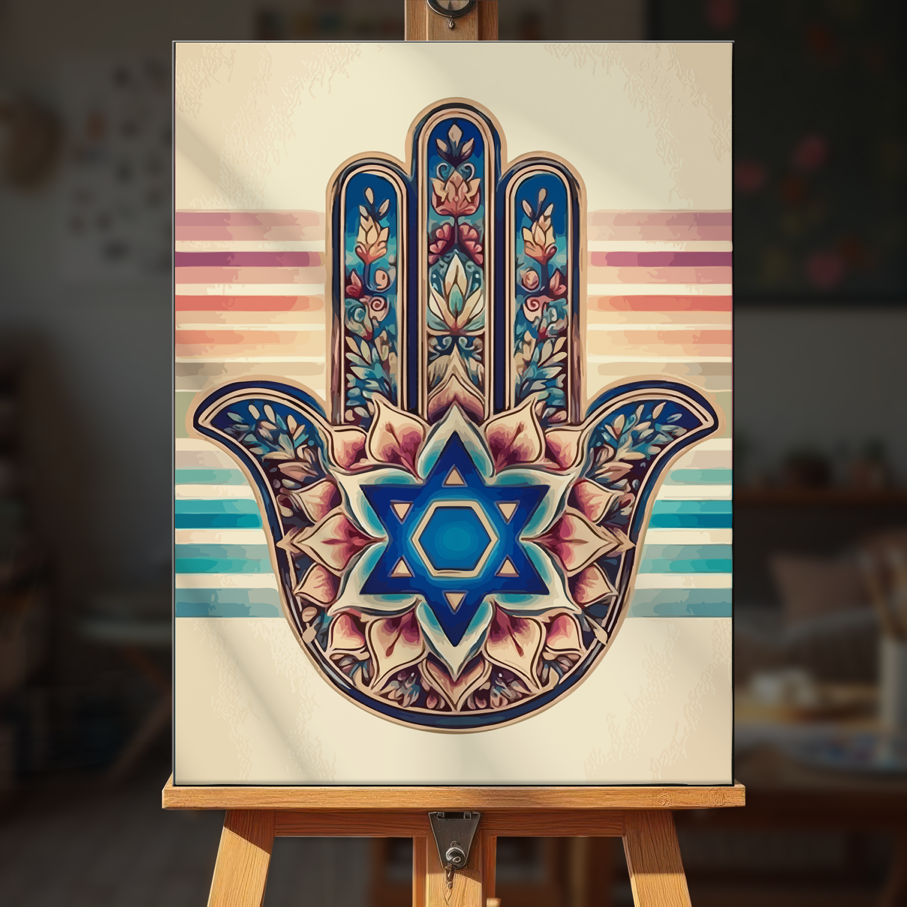 The canvas is pre-stretched on a wooden frame — ready to hang when finished.