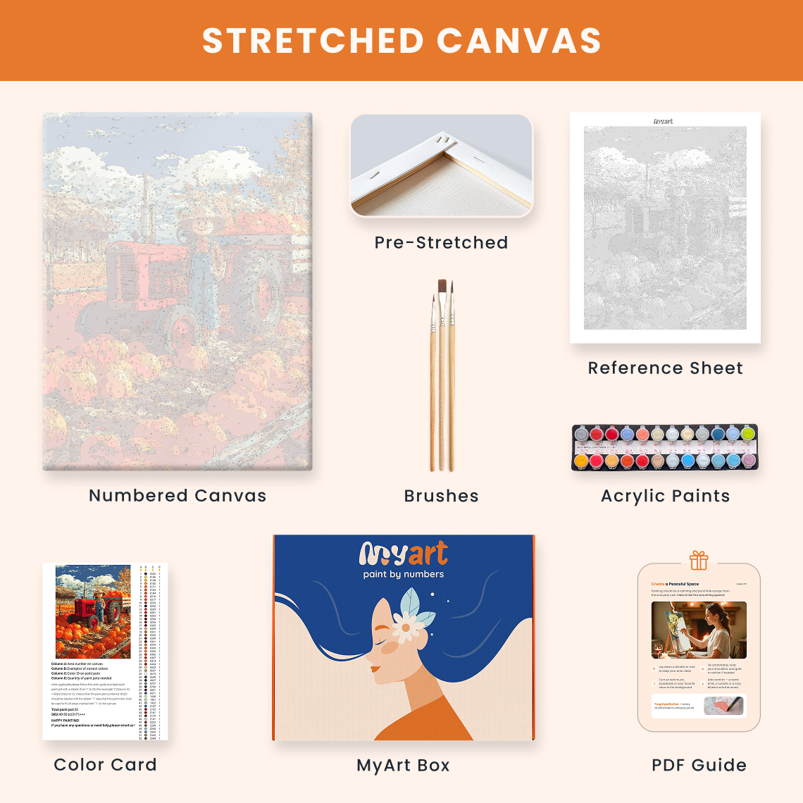 The canvas is pre-stretched on a wooden frame — ready to hang when finished.