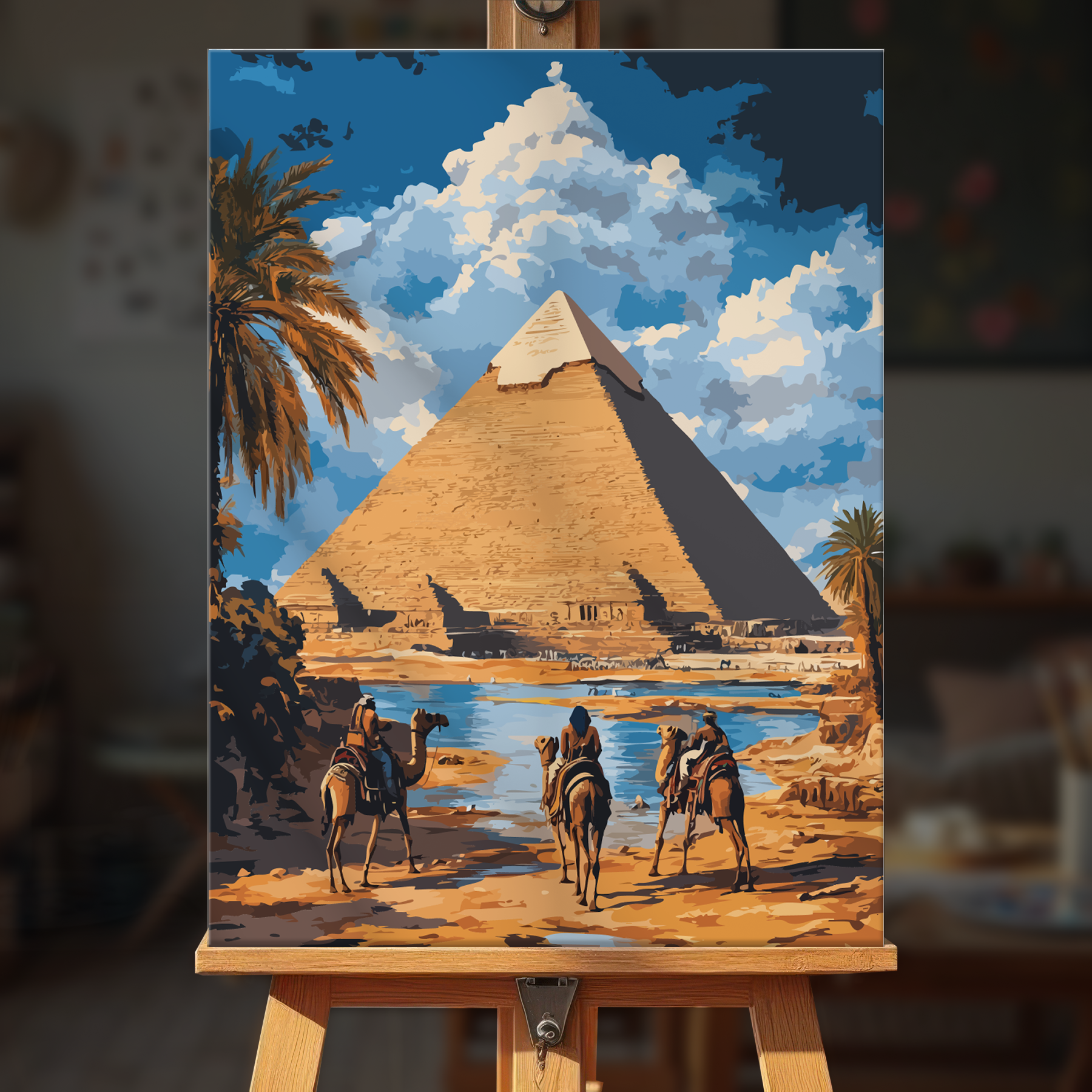 The canvas is pre-stretched on a wooden frame — ready to hang when finished.