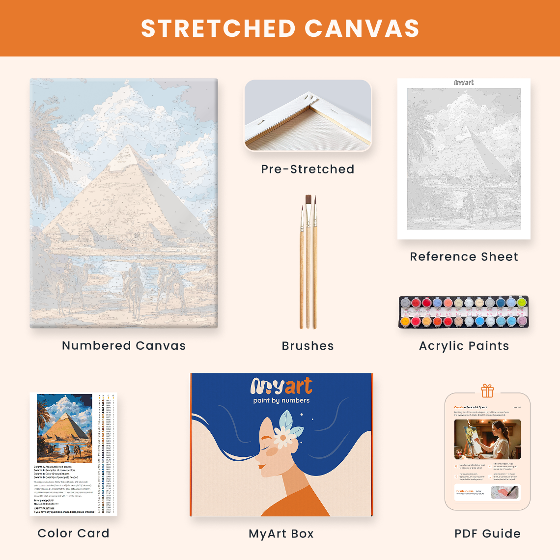 - Premium acrylic paint set (pre-mixed and numbered)
