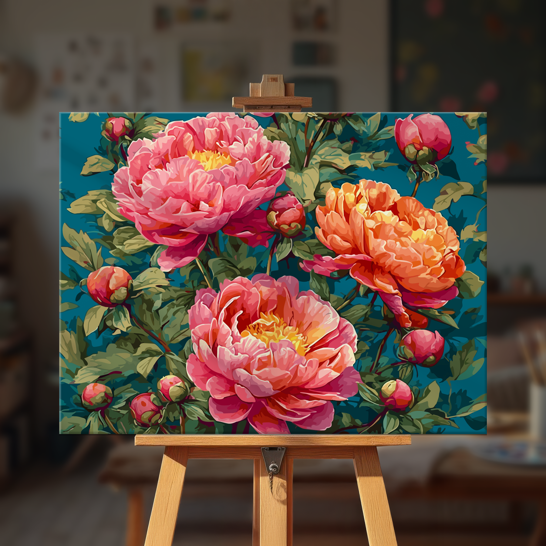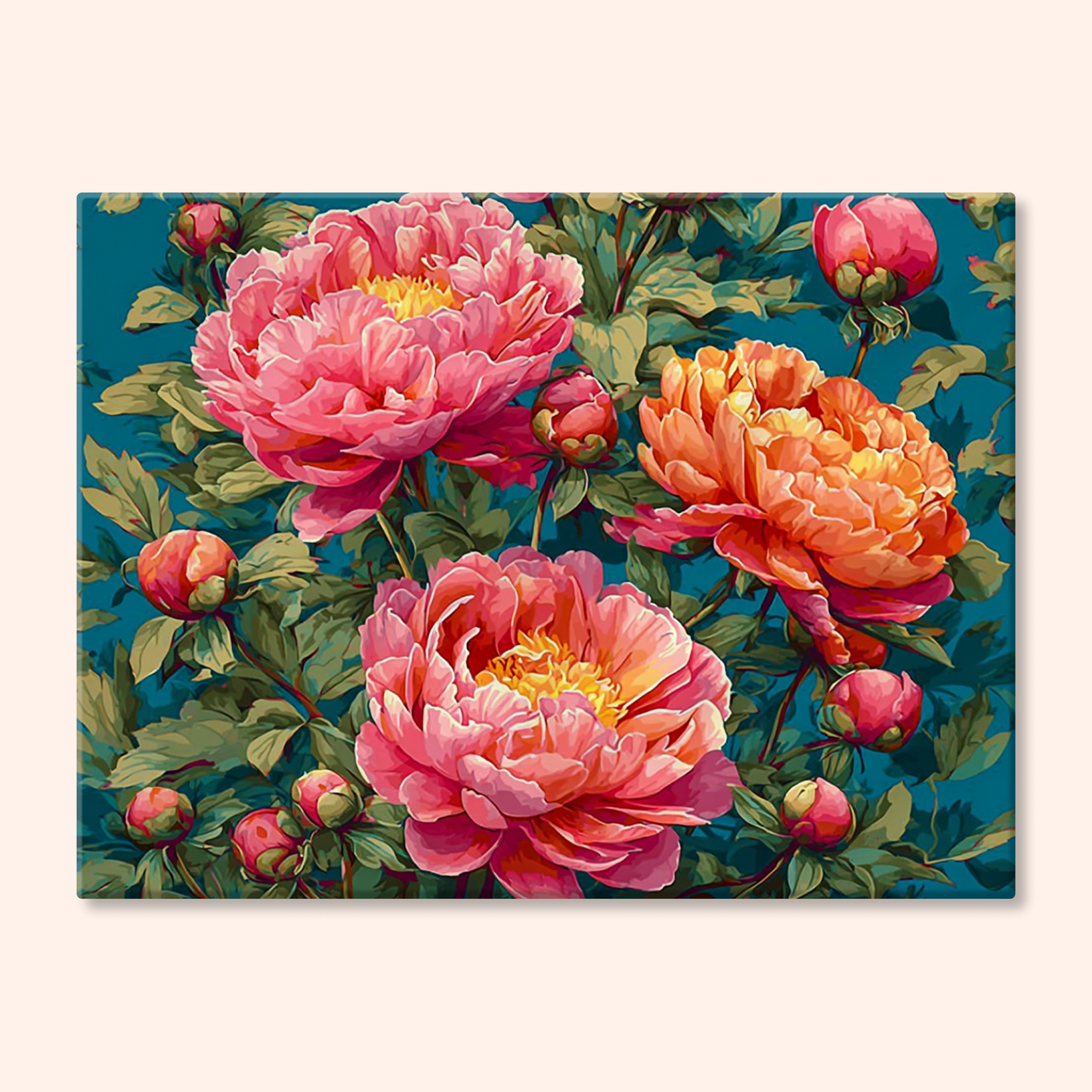 The canvas is pre-stretched on a wooden frame — ready to hang when finished.