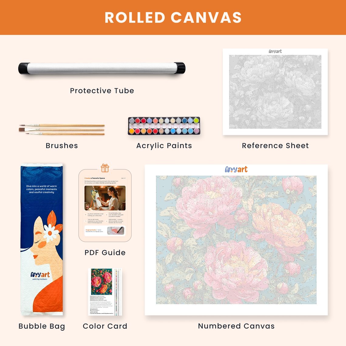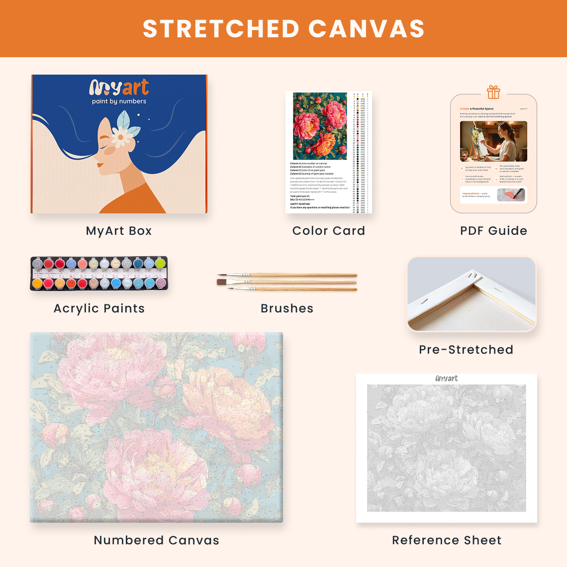 - Premium acrylic paint set (pre-mixed and numbered)