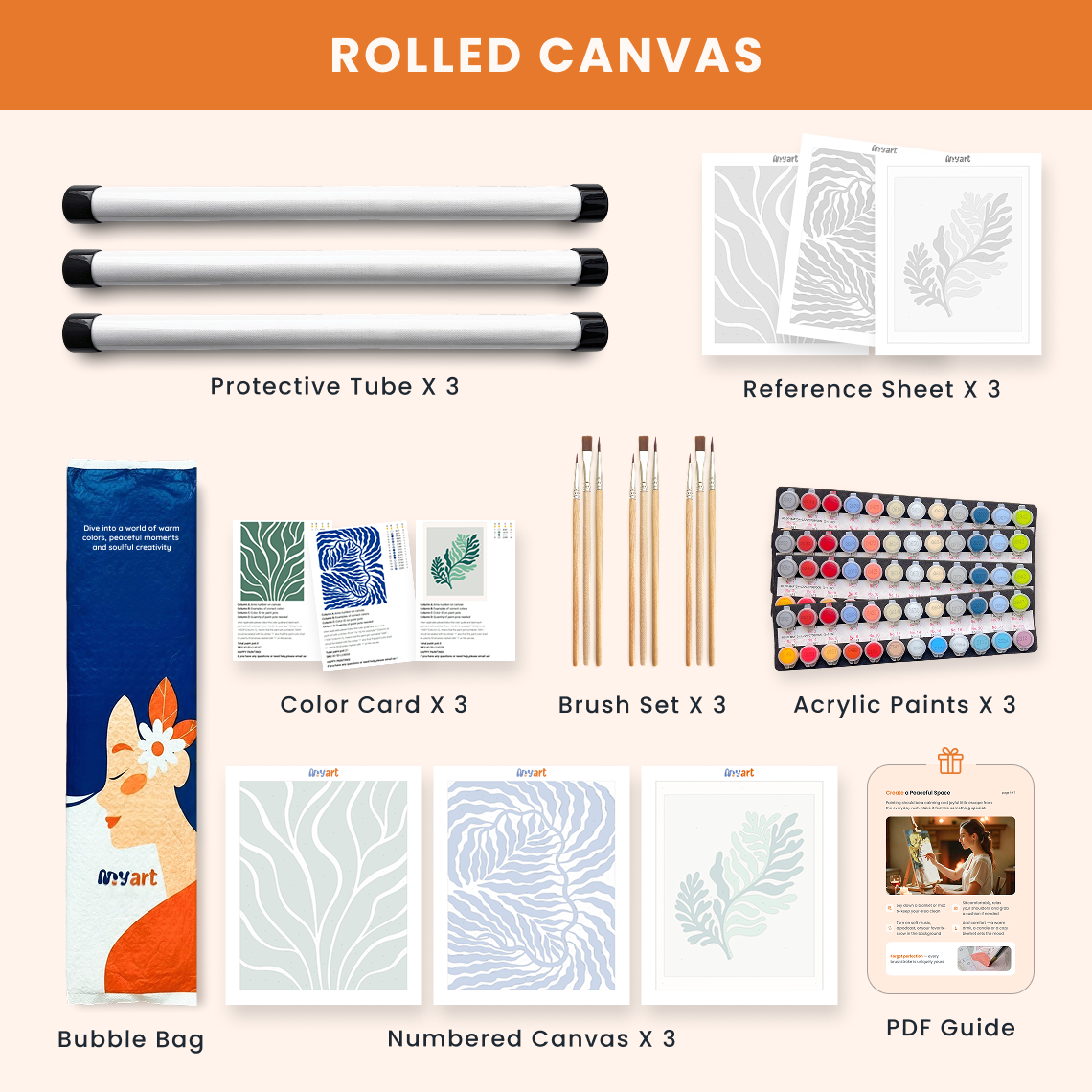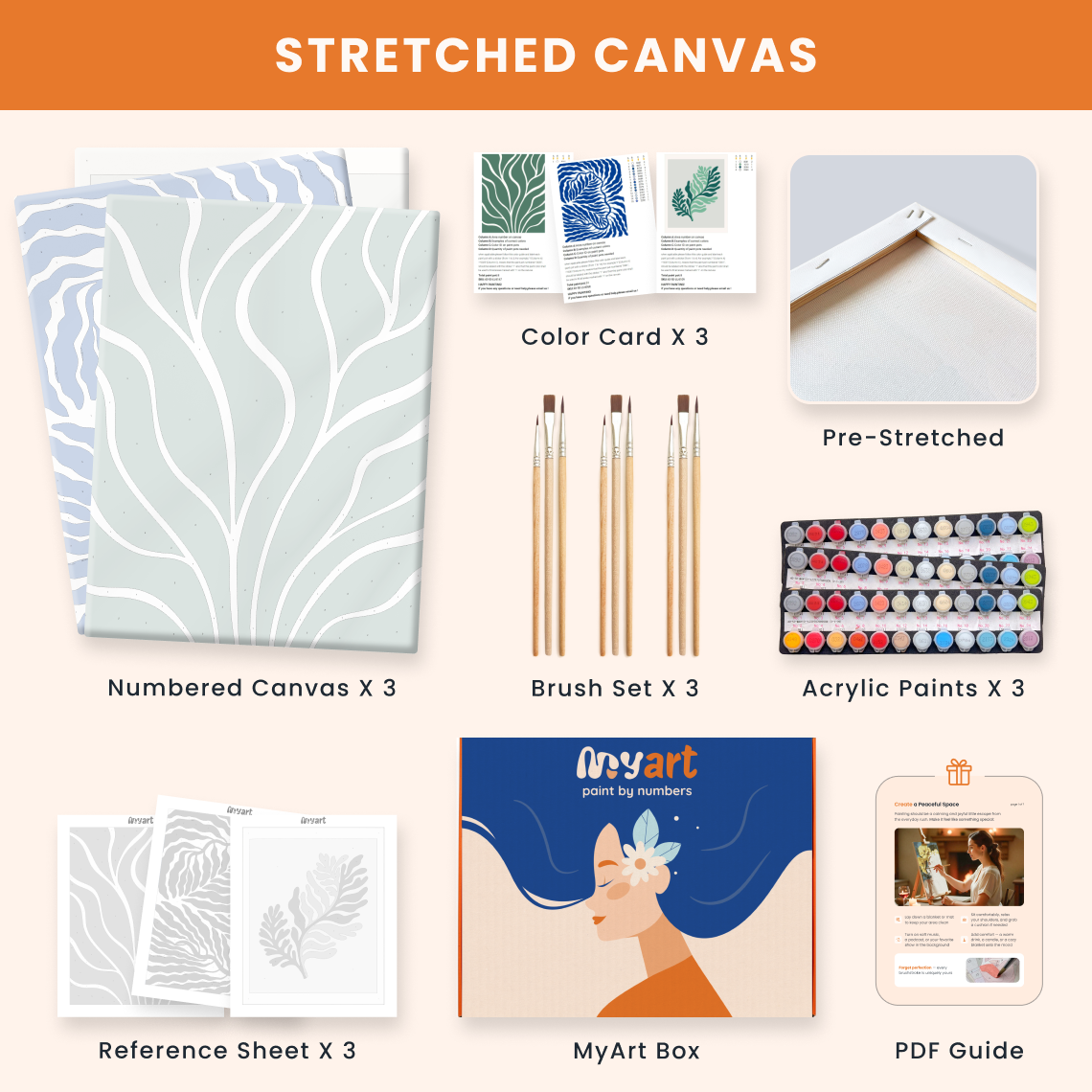 - Premium acrylic paint set (pre-mixed and numbered)