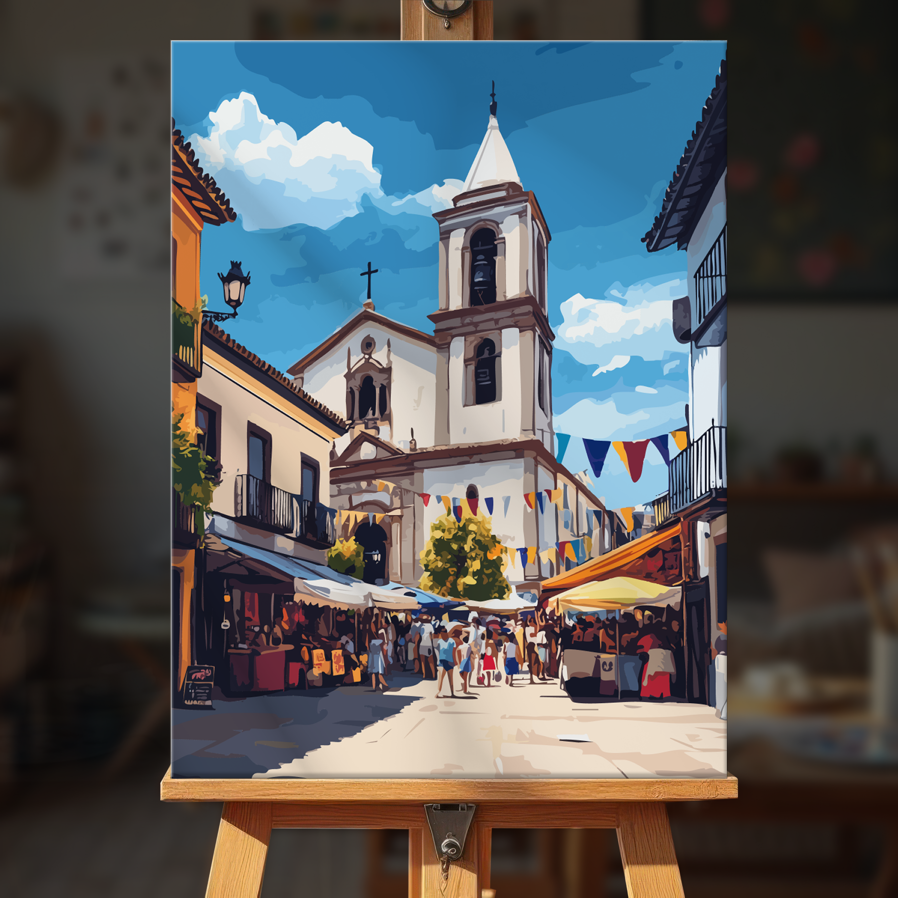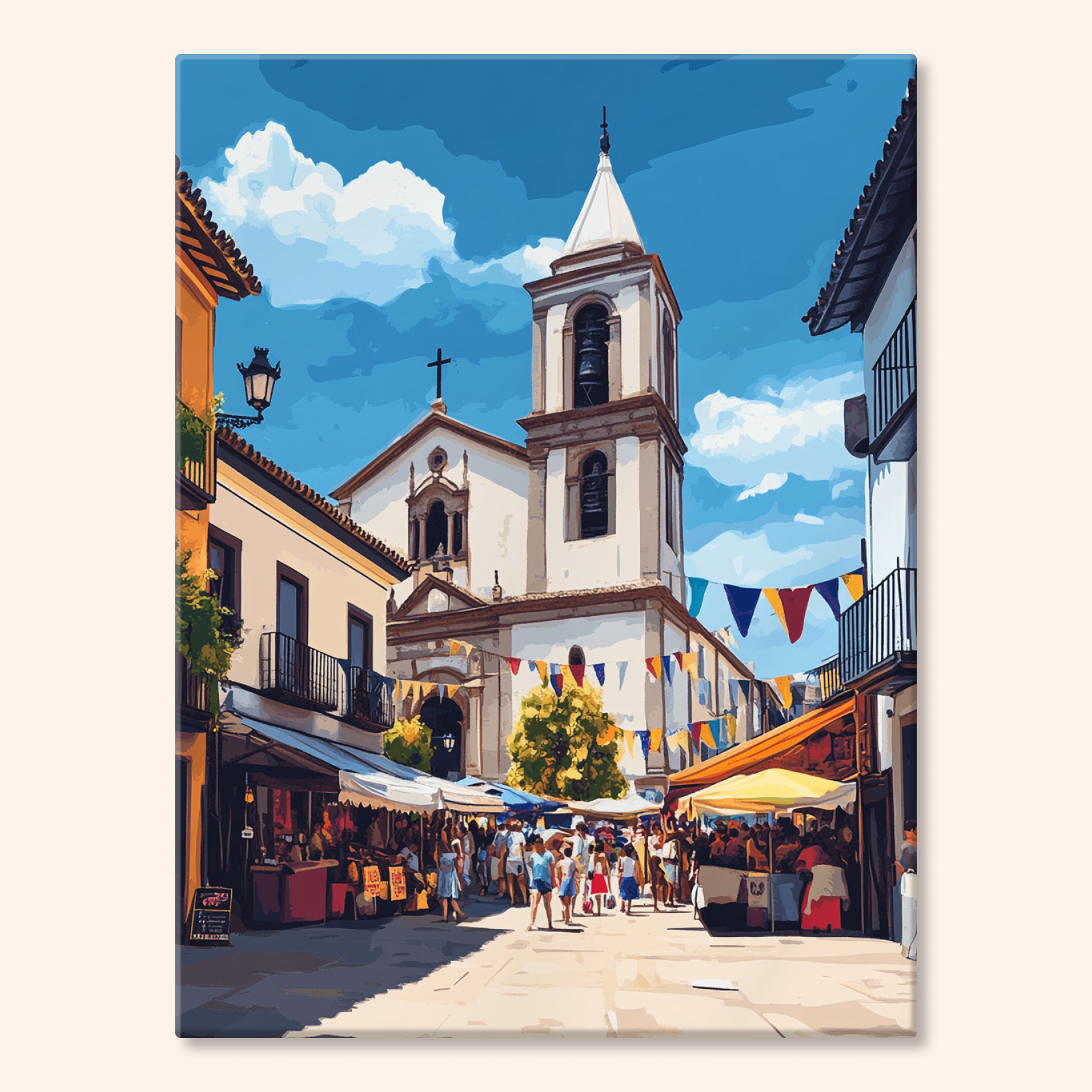 The canvas is pre-stretched on a wooden frame — ready to hang when finished.