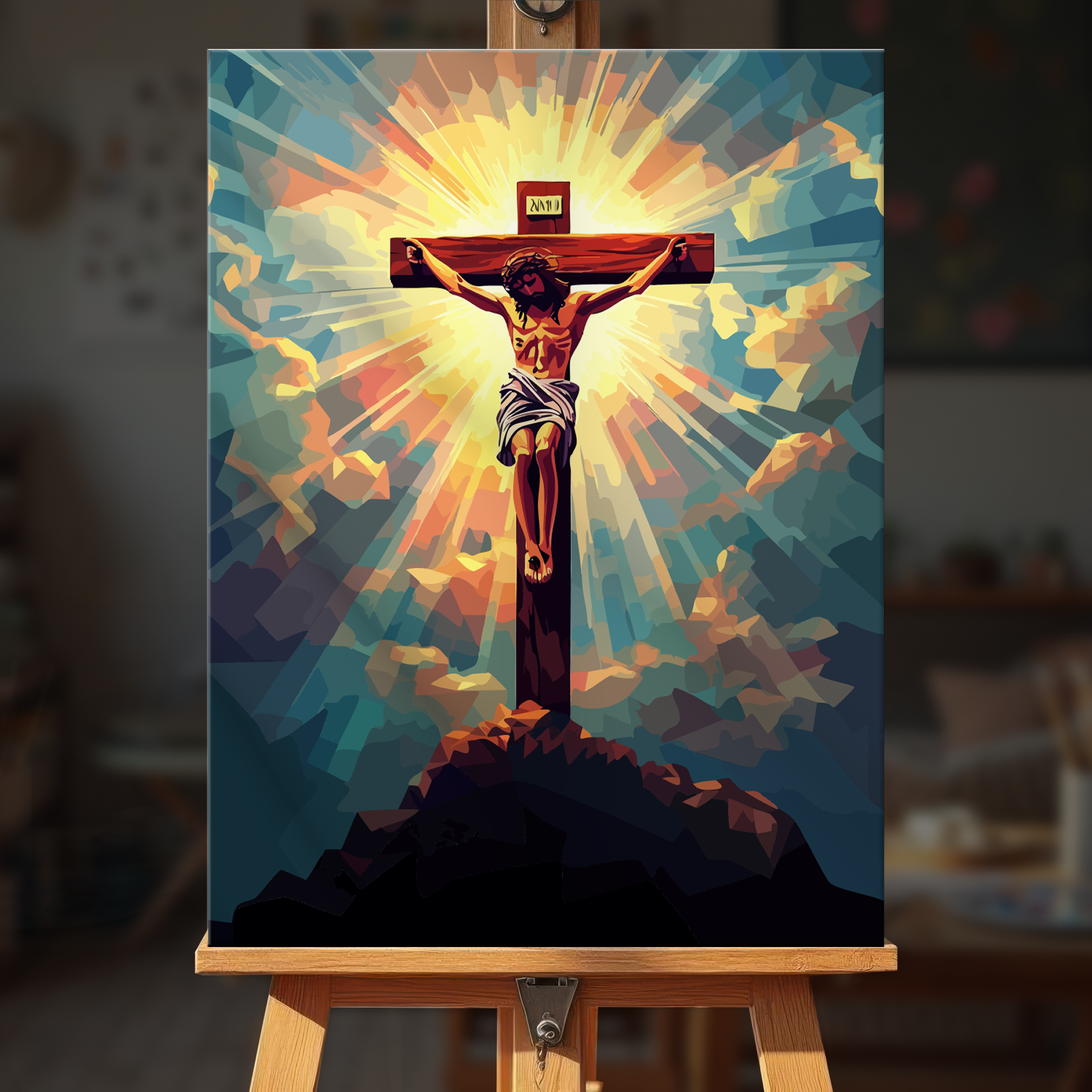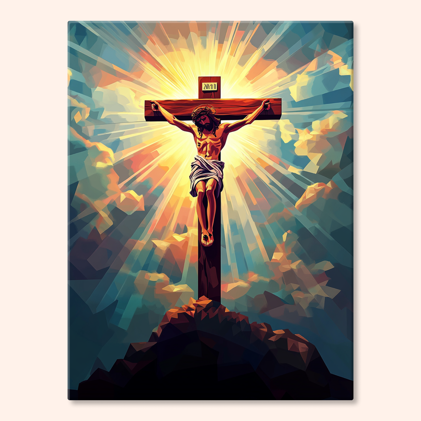 The canvas is pre-stretched on a wooden frame — ready to hang when finished.