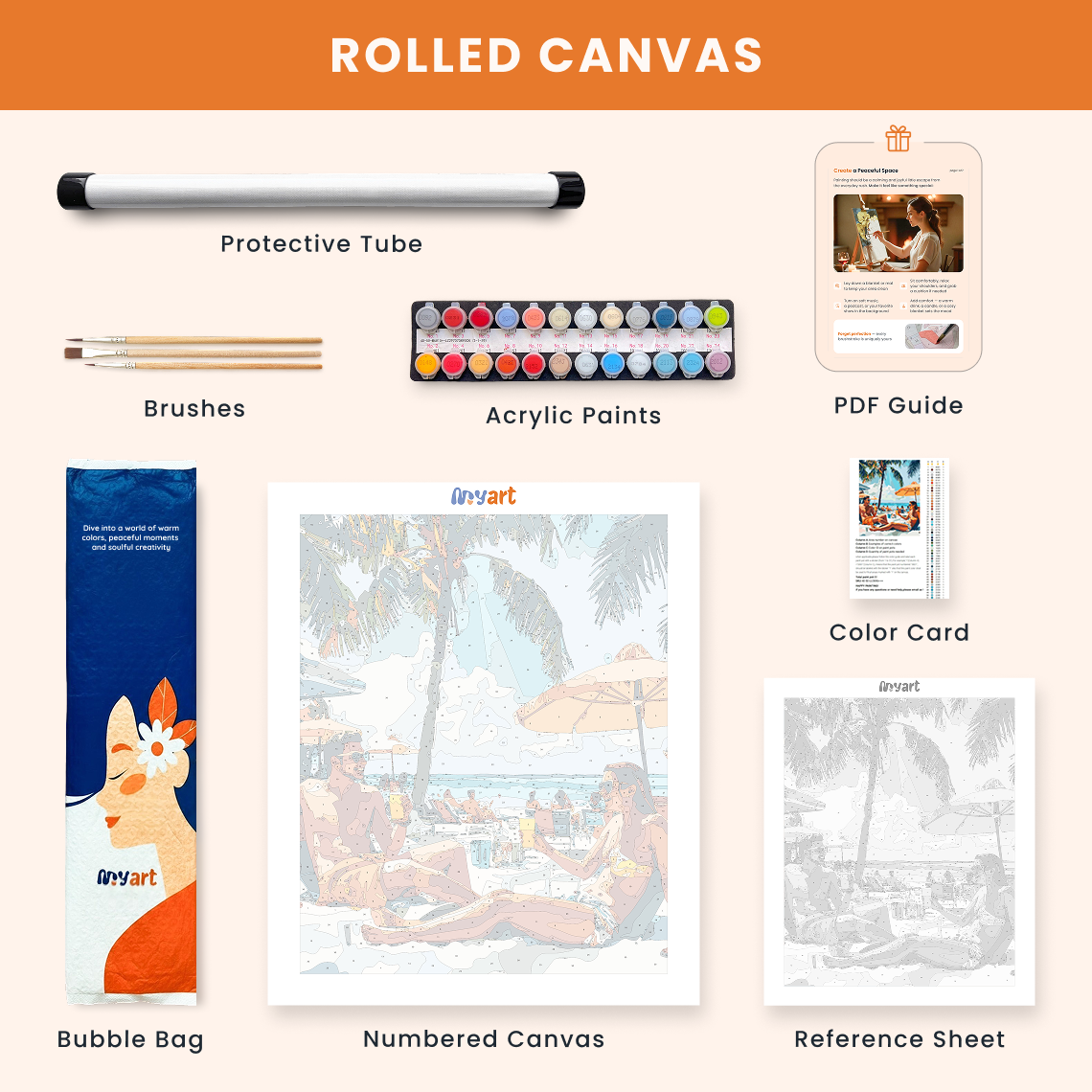- Premium acrylic paint set (pre-mixed and numbered)
