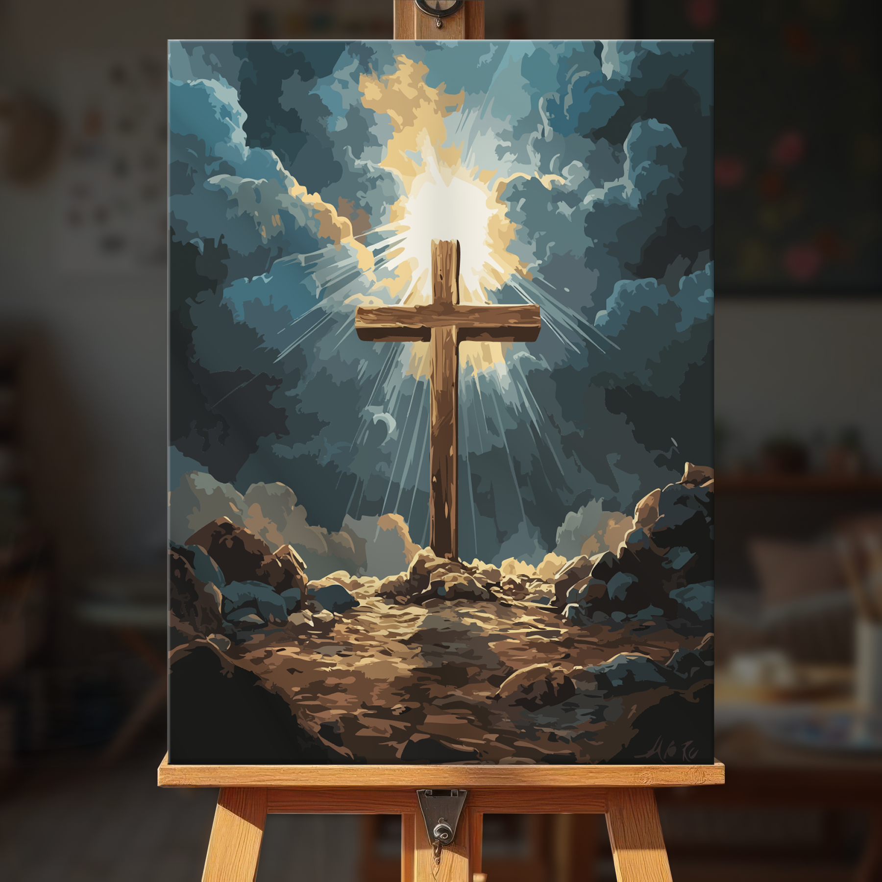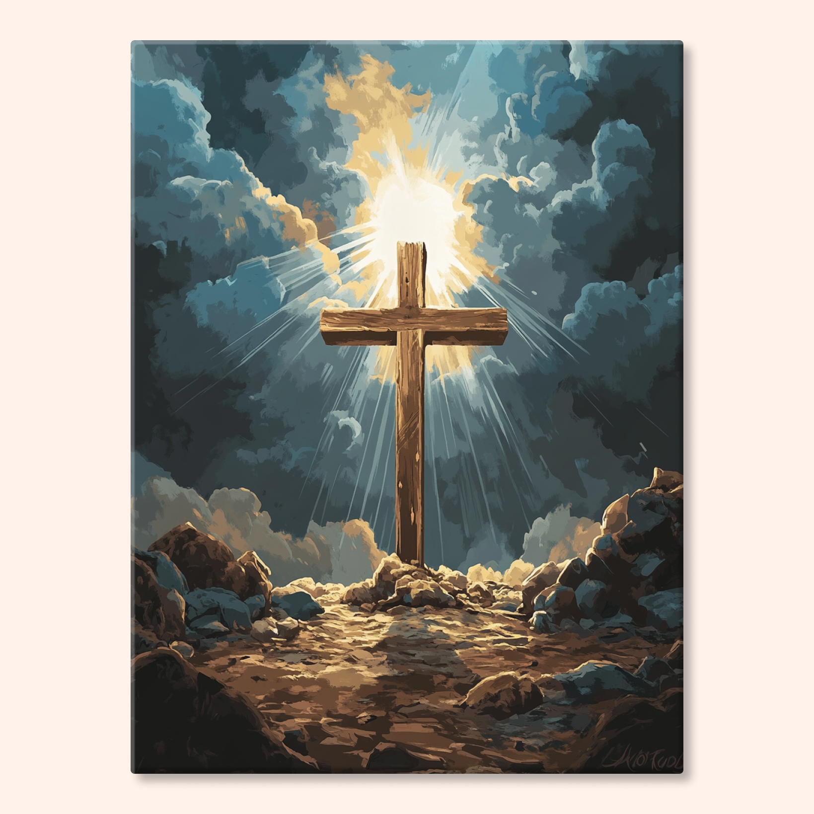 The canvas is pre-stretched on a wooden frame — ready to hang when finished.