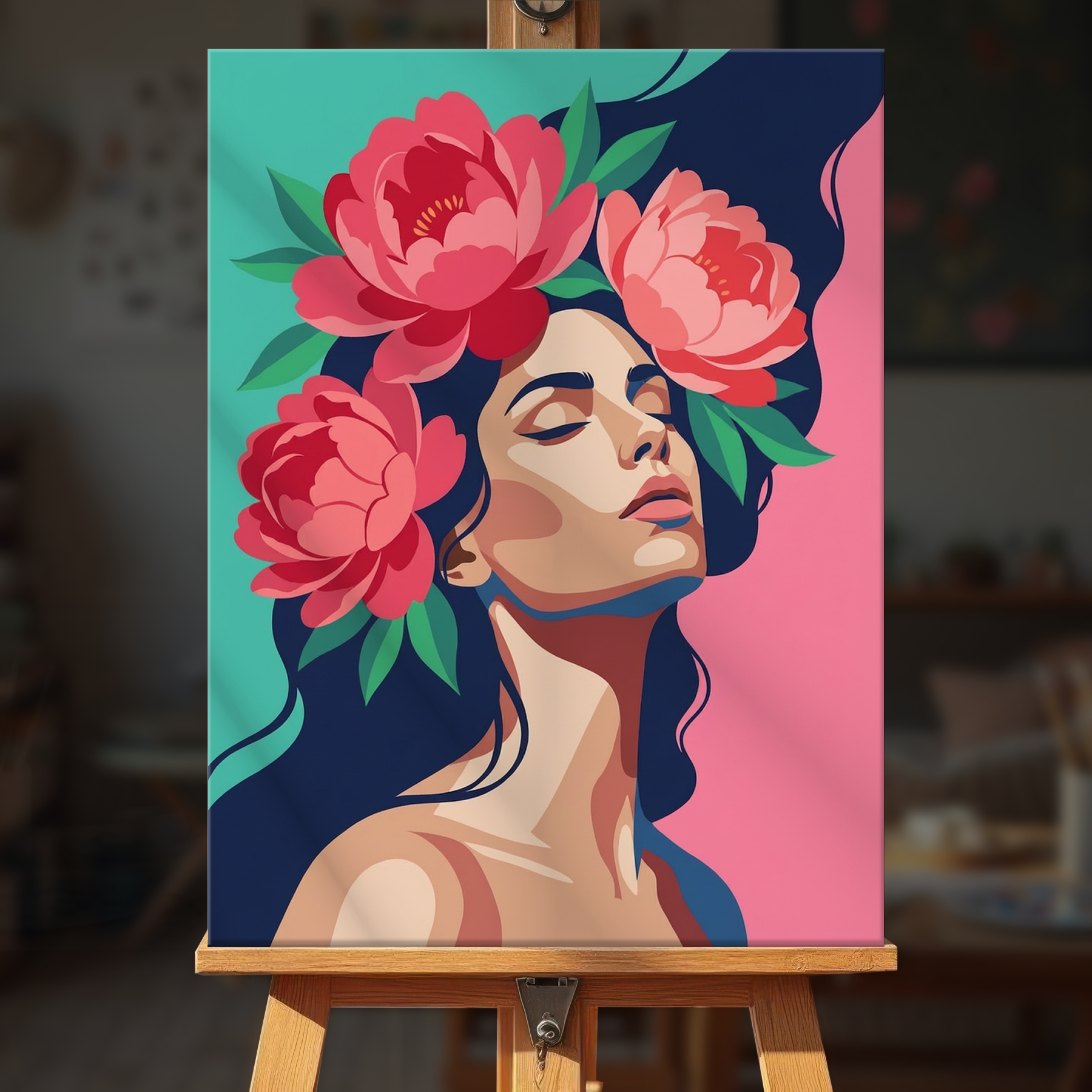 The canvas is pre-stretched on a wooden frame — ready to hang when finished.