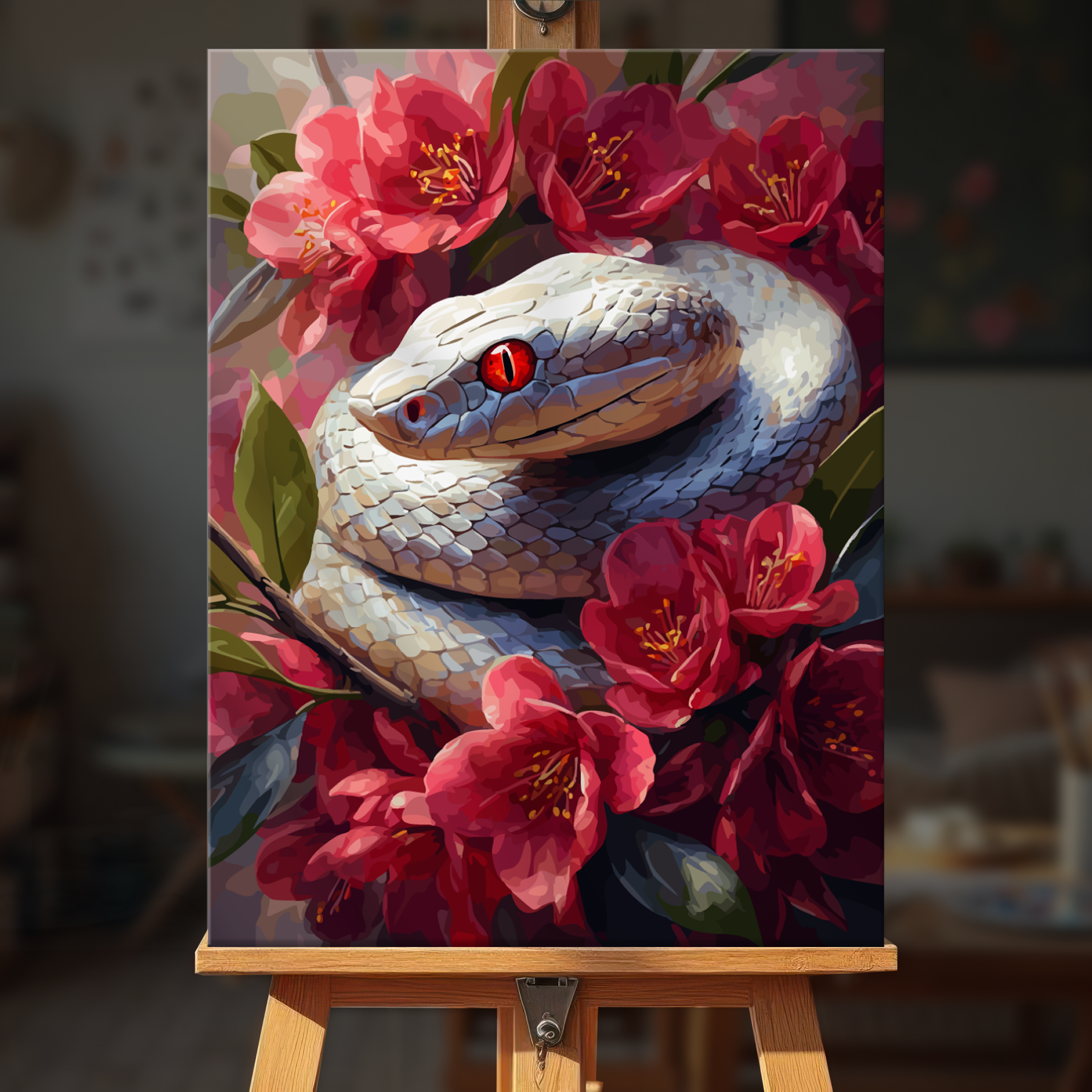The canvas is pre-stretched on a wooden frame — ready to hang when finished.