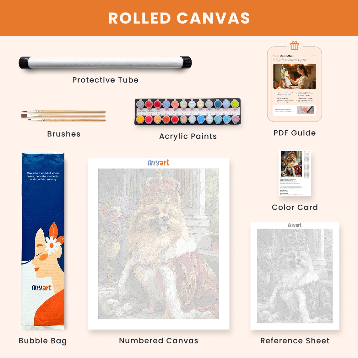 - Premium acrylic paint set (pre-mixed and numbered)