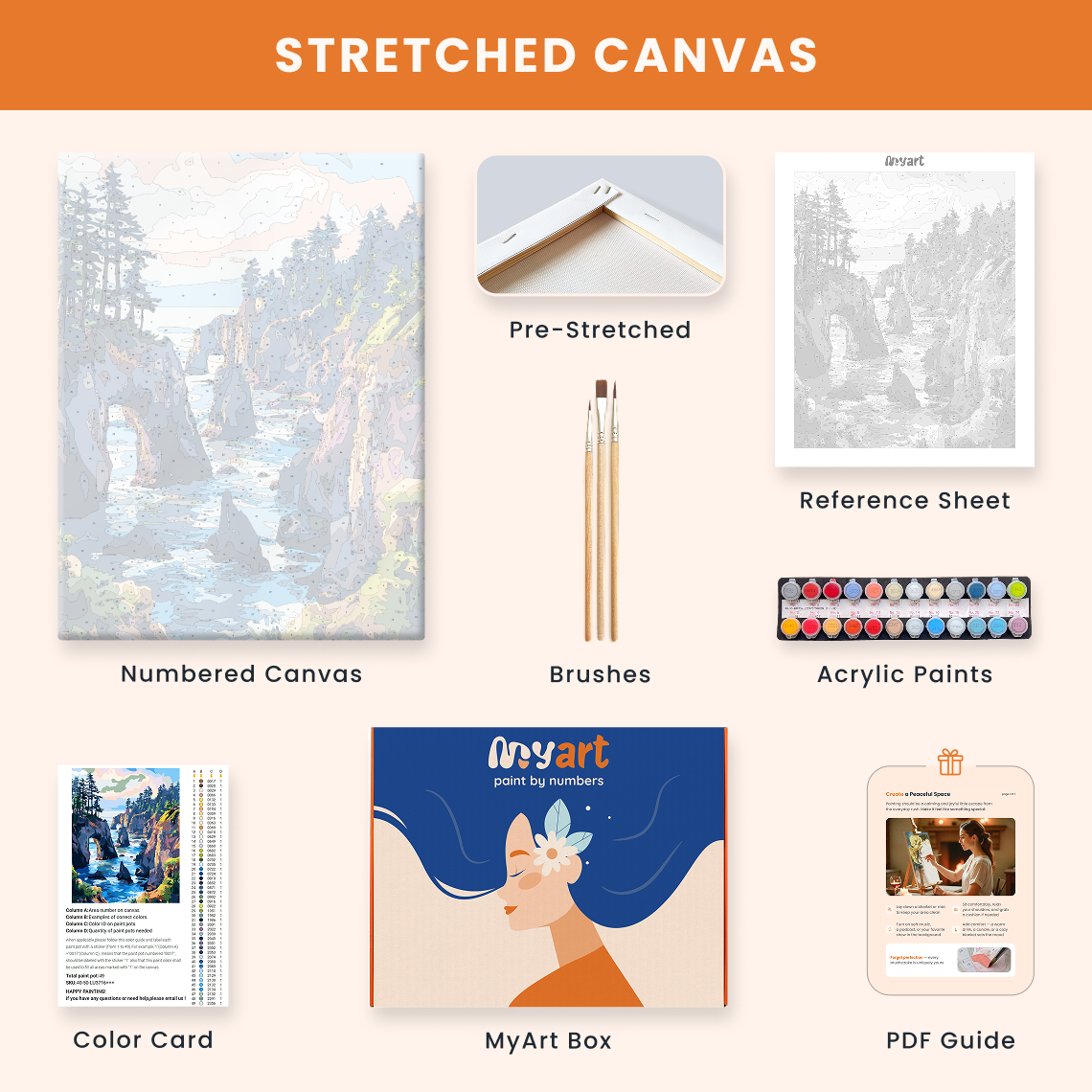 - Premium acrylic paint set (pre-mixed and numbered)