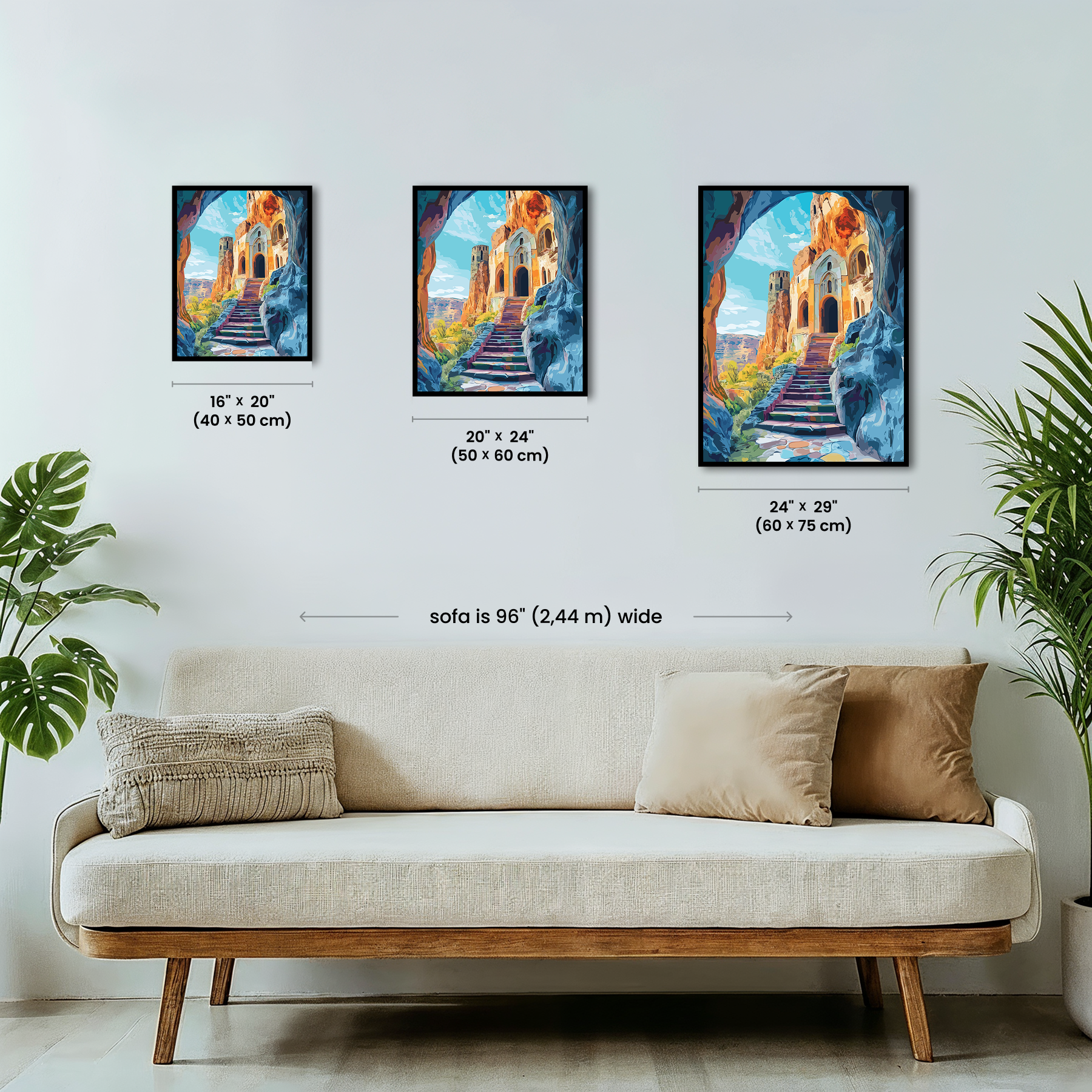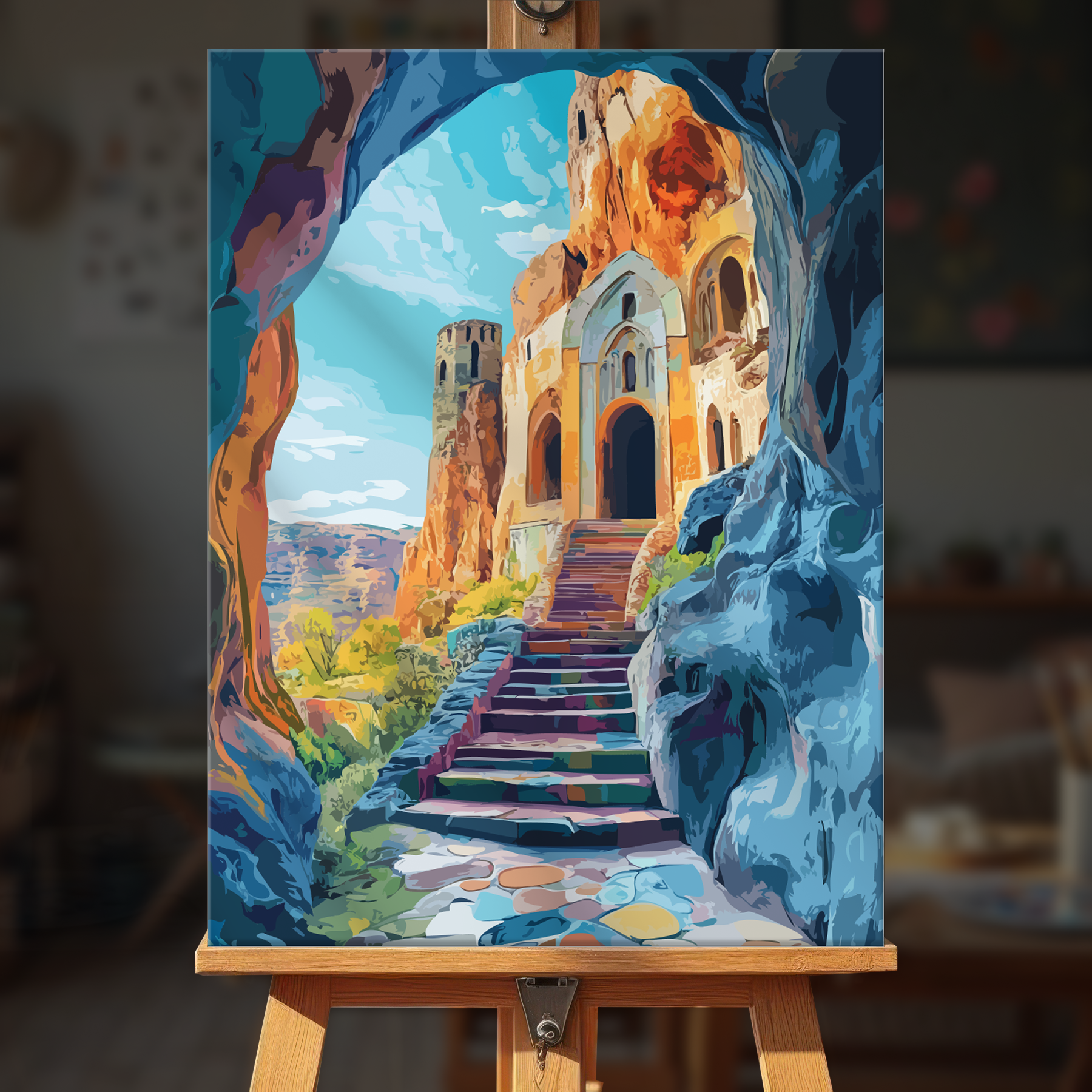 The canvas is pre-stretched on a wooden frame — ready to hang when finished.