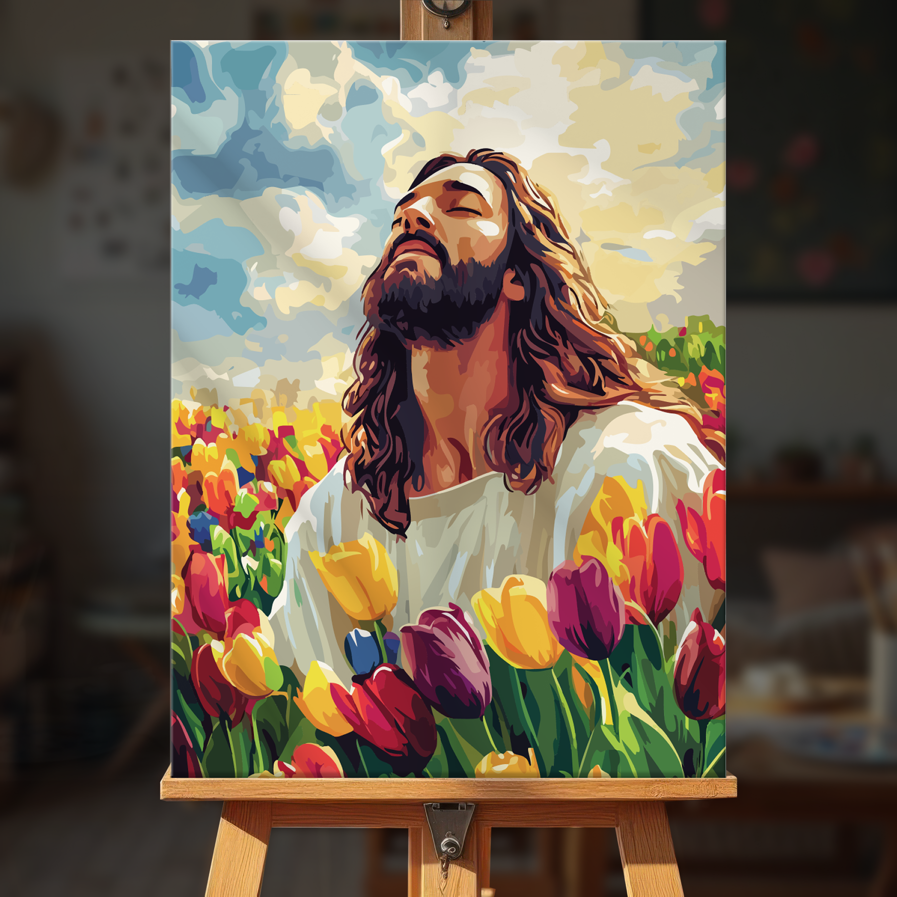 The canvas is pre-stretched on a wooden frame — ready to hang when finished.